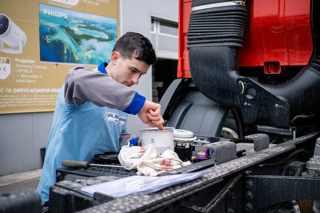 Da je znanje na področju avtomehanike sestavljeno tako iz teoretičnega kot praktičnega dela so ta četrtek dokazovali tudi dijaki iz omenjenih srednjih šol. Tekmovanje se je letos odvilo že tretjič, udeležilo pa se ga je 10 šol iz celotne Slovenije: Celje, Domžale, Koper, Ljubljana, Nova Gorica, Novo mesto, Postojna, Ptuj, Škofja Loka in Velenje. Dijaki so reševali vprašanja s posameznih področij avtoservisne dejavnosti in se pomerili še pri menjavi pnevmatike, menjavi vložka sušilca zraka na Volvovem tovornjaku ter zaščiti in pripravi električnega vozila na servis na vozilu Ford Mustang Mach-E. Poleg veščin znanja, ki ga skrivajo v sebi, so namreč morali pokazati tudi svoje ročne spretnosti. Medtem ko je Aljoša osvojil prvo mesto, sta se na drugo in tretje mesto z minimalno razliko v končnem seštevku uvrstila Jaka Vlašič s Strojne šole Novo mesto in Staš Stropnik, ki je zastopal Šolo za strojništvo Velenje. Borut Štajnaher, organizator in urednik revije Tranzit, je ob tem poudaril pomen povezovanja in namen samega projekta:
