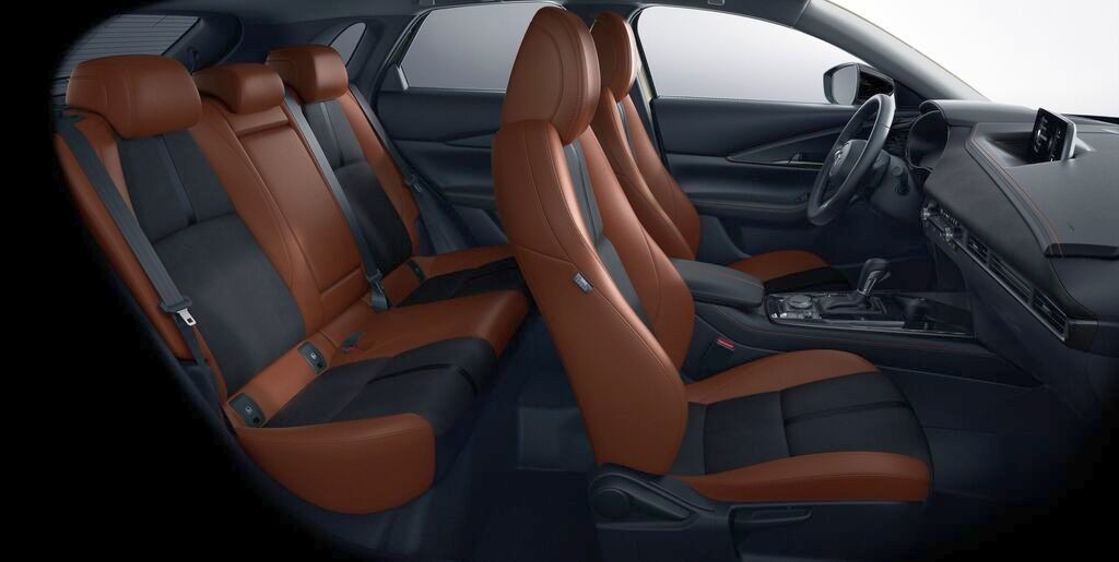 Notranjosti Nagise daje poudarek barva oblazinjenja sedežev z umetnim usnjem Terracotta (barva žgane gline), ki kabini zagotavlja retro pridih. Za kontrast poskrbi črni veganski semiš na sredini sedežev in armaturni plošči ter lakiranje okrasnih elementov oblog, kot so obrobe prezračevalnih šob in kljuke vrat v temno sivi barvi Gunmetal. Rezultat je retro-sodoben in obenem športen ambient v kabini. Notranjost dopolnjujejo vrhunske podrobnost, vključno s poudarki v videzu črnega kozjega kordovanskega usnja na sredini sedežev in šivi v barvi Terracotte na armaturni plošči. Veganski semiš Leganu® krasi tudi obloge vrat Mazde3 in poskrbi za dodaten pridih prefinjenosti. Mazda3 in Mazda CX-30 modelnega leta 2024 sta opremljeni z naprednimi varnostnimi funkcijami, umetniško izdelano notranjostjo in inovativno tehnologijo motorjev. Obe imata posodobljen informativno-razvedrilni sistem, izboljšan sistem za zaznavanje pešcev in izboljšane funkcije povezljivosti. Oba modela sta na voljo z elektrificiranimi pogonskimi sklopi, bencinskim motorjem e-Skyactiv z atmosferskim polnjenjem in revolucionarnim motorjem e-Skyactiv X.