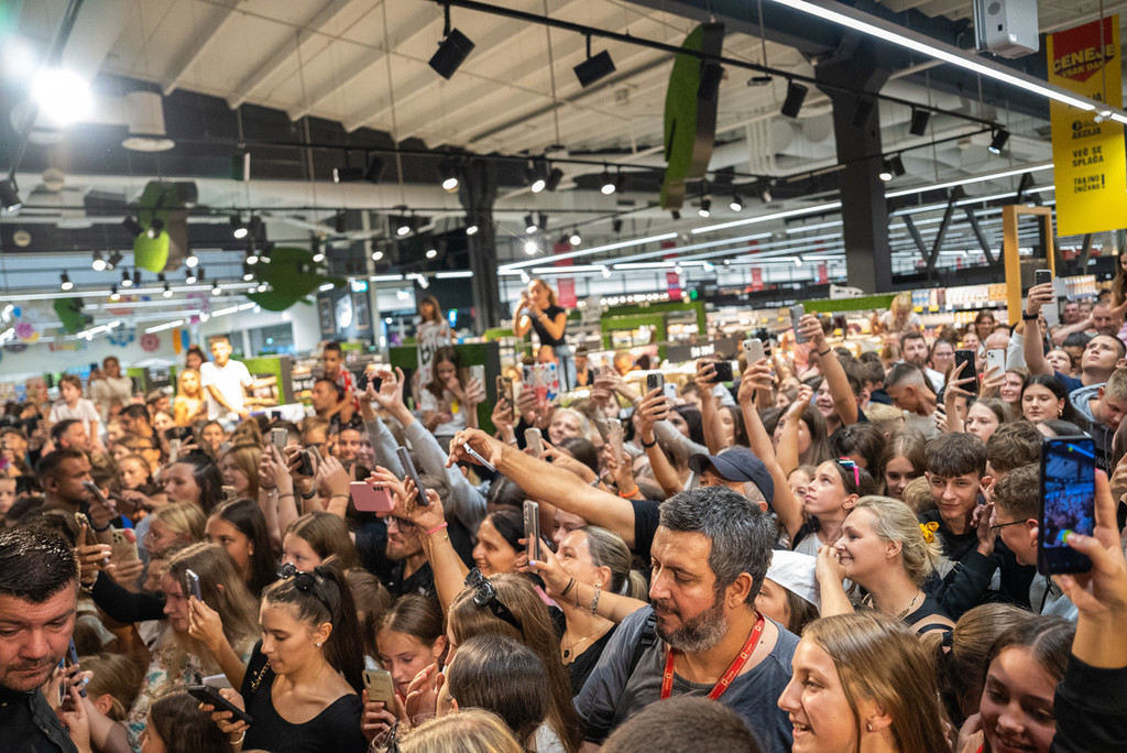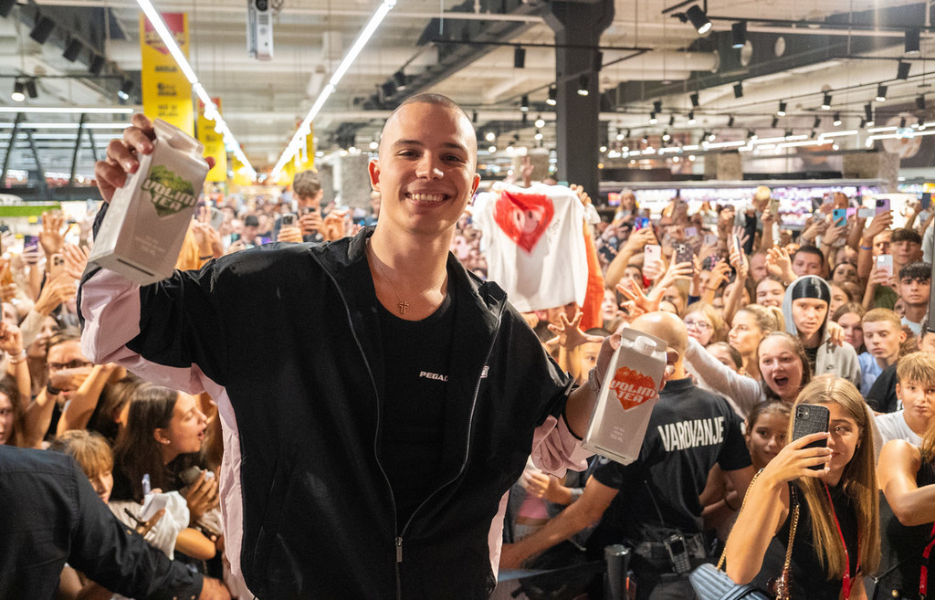Voyage, ki je dobro poznan tudi med mladimi pri nas in vedno poskrbi za izjemno energijo, je v največjem hipermarketu Mercatorja ustvaril prav posebno norijo. Njegovi fani so se za dogodek, ki je bil načrtovan ob 19. uri, pričeli zbirati že od 15. ure naprej, da bi si zagotovili čimboljše mesto ob odru v osrčju te znane trgovine. Nagrajenci nagradnih iger so imeli ekskluzivno priložnost spoznati Voyaga, medtem ko so ostali oboževalci upali na podpis na majice Volim Tea in ledene čaje. Tolikšnemu navalu mladih v Sloveniji že dolgo nismo bili priča. Srbski zvezdnik Voyage je dobro poznan tudi pri nas, obenem pa magnet najstnic in najstnikov, ki jim je tovrstna glasba najbližja. A ne le njim. Pozitivno razmišljanje, izvirnost besedil in ritmičnost njegovih skladb, nikogar, ne glede na leta, ne pustijo ravnodušnega.