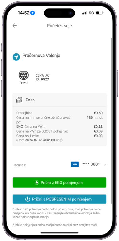 V aplikaciji Mega Mobility so že vidne polnilnice, ki omogočajo novo storitev. Cena »EKO polnjenja« bo znašala 0,22 €/kWh. Storitev predvsem sledi optimalni porabi v elektroenergetskem sistemu. V času konic oziroma višjih cen energije bo ob izbiri »EKO polnjenja« sistem avtomatsko omejil moč polnjenja, medtem, ko se bo vozilo ob manjših obremenitvah še vedno polnilo s polno močjo. V vsakem primeru je uporabniku na voljo način »POSPEŠENO polnjenje«, pri katerem sistem ne prilagaja moči. V prihodnje pri MegaTelu vidijo rešitev za zagotavljanje električne energije ravno v optimalnem upravljanju in zniževanju preobremenitev. Z dano novostjo tako uporabniki električnih vozil z optimalnim polnjenjem prihranijo, hkrati pa s tem pripomorejo, da je elektroergetski sistem v ravnovesju.