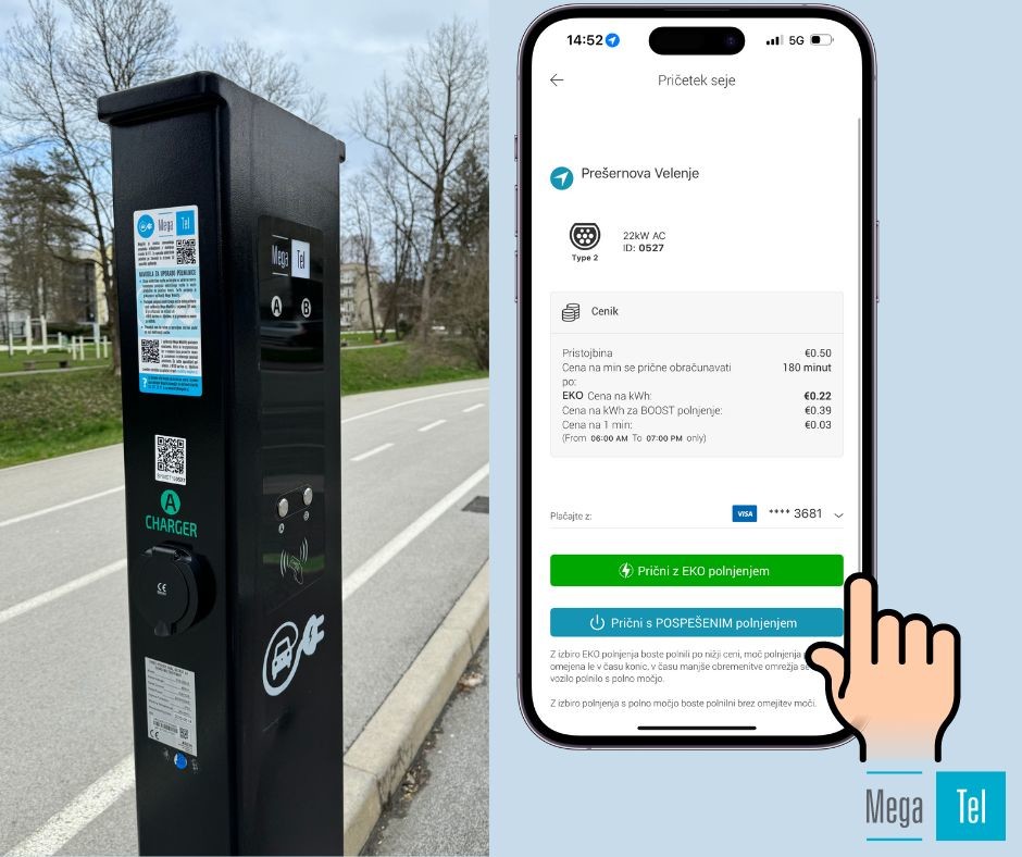 Največji ponudnik celovitih rešitev eMobilnosti v Sloveniji MegaTel bo od 13. marca dalje na polnilnicah omogočal novost »EKO polnjenje«. Uporabnik bo lahko sam izbral ali želi polniti s polno močjo – »POSPEŠENO polnjenje« ali pa izbere »EKO polnjenje« in polni po nižji tarifi z optimalno močjo. S preklopom na »EKO polnjenje« uporabnik dovoli, da sistem prilagaja moč polnjenja glede na potrebe elektroenergetskega sistema, kar prinaša nižje stroške. Za začetek bo storitev na voljo na 27 polnilnicah po Sloveniji, kasneje jo nameravajo vključiti na vseh polnilnicah in tako tudi prispevati k bolj optimalni rabi energije.