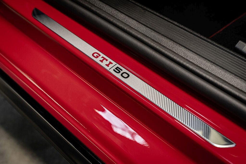 Ekskluzivna jubilejna oprema s pridihom avtomotošporta. Jubilejni model se lahko pohvali s številnimi ekskluzivnimi oblikovnimi posebnostmi. Med njimi so denimo športni sedeži s karirastim vzorcem z detajli v temno zeleni barvi in rdečimi varnostnimi pasovi. Za občutek vožnje v dirkalniku poskrbi večfunkcijski usnjeni športni volan z emblemom 50-letnice modela GTI in integriranima prestavnima ročicama za 7-stopenjski menjalnik z dvojno sklopko DSG. Na zunanji strani najdemo logotip GTI-50 na usmerniku zraka ob zgornjem robu strehe in na notranji strani stranskih ogledal. Od drugih ekskluzivnih elementov naj naštejemo še poseben dekor na vratnih pragovih, črno lakirano streho, črni ohišji zunanjih ogledal in črne obrobe izpušnih cevi. Športni značaj še dodatno poudarja markantna stranska črta na pragovih, ki se preliva iz črne v tornado rdečo barvo.