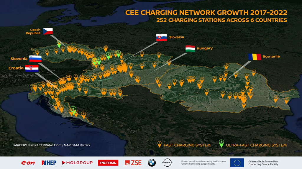 Konzorcij NEXT-E je v okviru projekta NEXT-E v Češki, Hrvaški, Madžarski, Romuniji, Slovaški in Sloveniji namestil popolnoma integrirano in dosegljivo infrastrukturo za polnjenje. V minulih štirih letih se je Nissan pridružil podjetjem ZSE, E.ON, HEP, PETROL, MOL Group in BMW v prizadevanjih za olajšanje vsesplošnega sprejema električnih vozil in omogočanja električne mobilnosti.