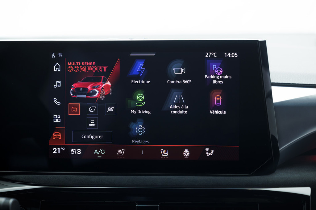Na armaturno ploščo je (glede na različico) nameščen dvojni zaslon z diagonalo 25,65 centimetra (10,1'') v obliki črke V, tako da je osrednji zaslon obrnjen proti vozniku. Zelo dovršen majhen volan je prevzet iz modelov višjega razreda. Poleg njegovih estetskih odlik ima tudi več funkcionalnih prednosti. Omogoča zmanjšanje števila zavrtljajev volana med skrajnima legama s 3,3 na 2,6, kar olajšuje okretnost. Prav tako ima nameščen gumb sistema Multi-Sense, s katerim je možno preklapljati med