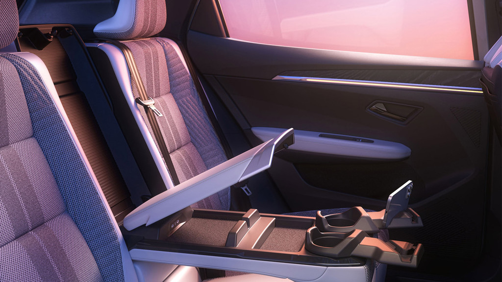 Potnika na zadnjih sedežih imata na voljo domiseln naslon za roke, ki znatno izboljša njuno bivalno izkušnjo. Naslon ima snemljivi roki, ki sta obrnjeni k vsakemu od potnikov, odlagalni prostor za pametne telefone in tablične računalnike ter izvlečni držali za zaslone, ki pripomore k udobnemu gledanju. Držali za kozarce in vtičnici USB-C dopolnjujeta ta tehnološko dovršen naslon, ki ima skupno za 3,6 litra odlagalnega prostora. Loputa za dostop do prtljažnika omogoča prevažanje dolgih