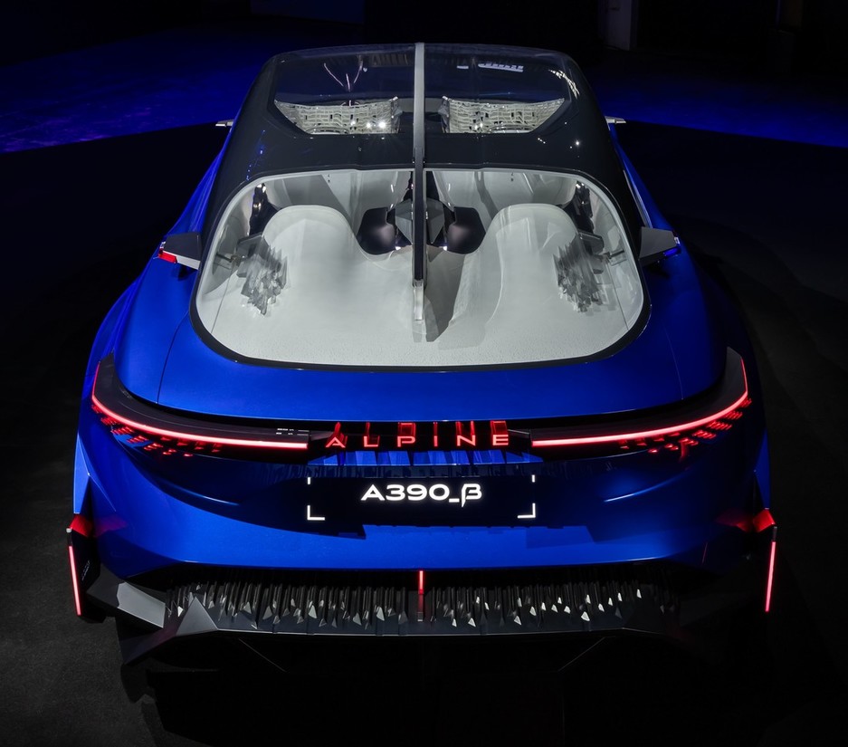 Razstavni prototip A390_β, prvi povsem električno gnani sport fastback znamke Alpine, uvaja novo dimenzijo v športni svet znamke. Nakazuje drugi model od treh iz »sanjske garaže« (Dream Garage), to je idealne garaže znamke Alpine za vse navdušene voznike. Po modelu A290 in pred prihodnjo električno A110, je A390_β glasnik uresničenja druge faze »sanjske garaže«, v kateri bodo trije športni avtomobili, ki bodo pomenili prehod znamke na električen pogon.