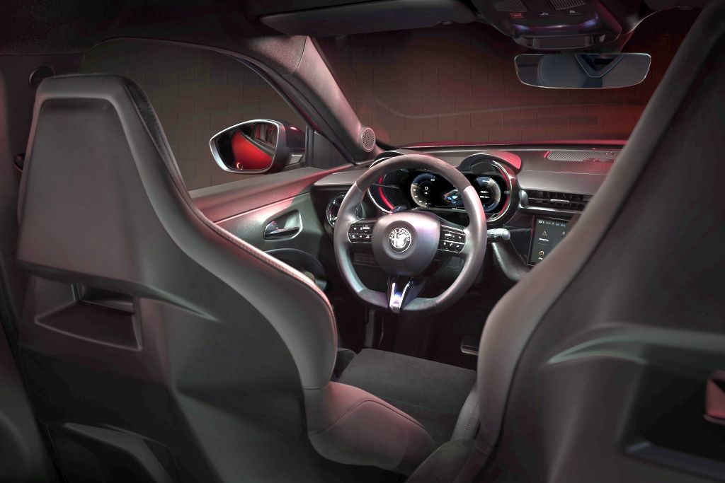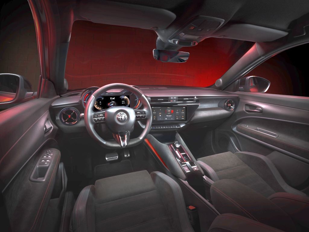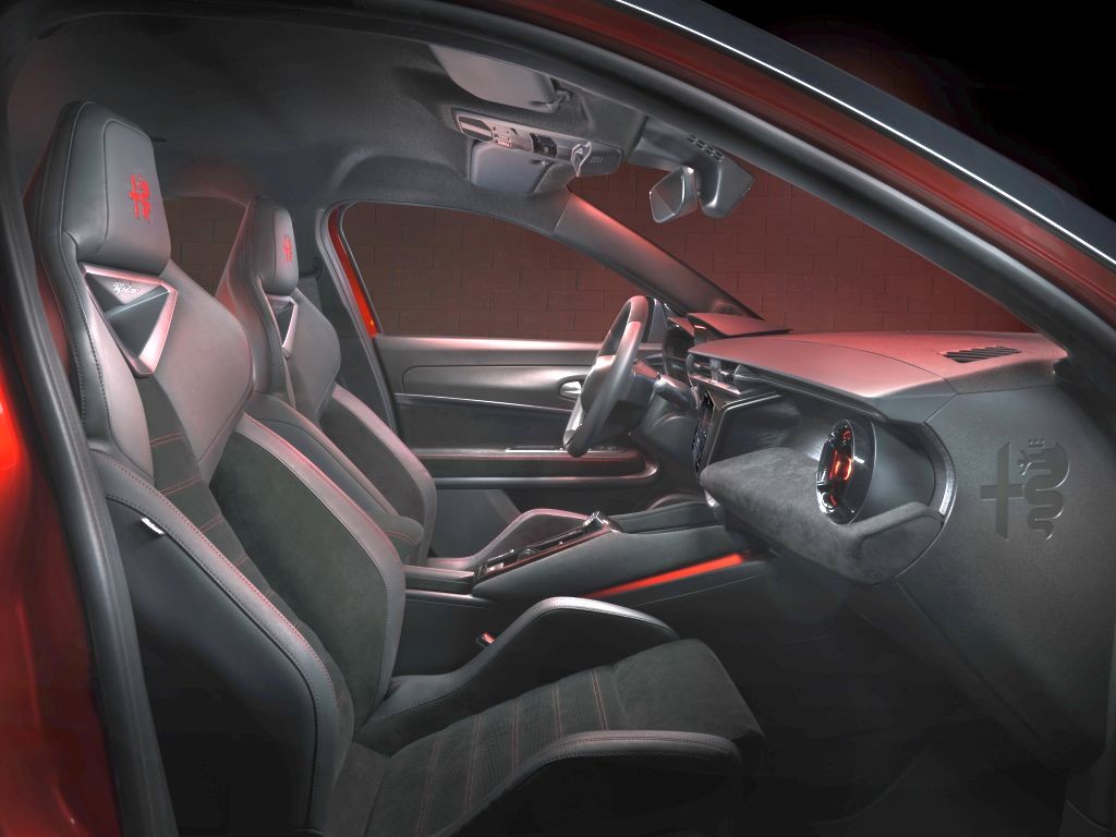 na dotik. Notranjost dodatno krasijo zračniki klimatske naprave v obliki štiriperesne deteljice (quadrifoglio), simbolom športnosti par excellence.
