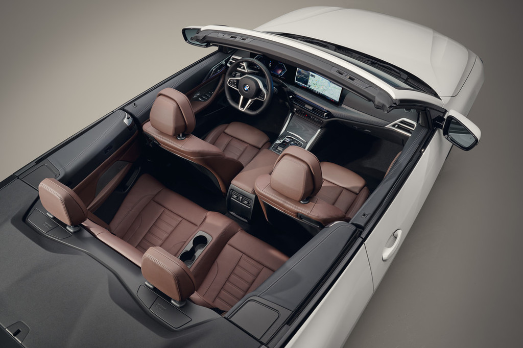 Obsežna digitalizacija omogoča nadaljnje zmanjšanje števila gumbov in komand v kabini. Optimizirano delovanje prezračevanja, klimatizacija in opcijsko gretje sedeža in volana prek nadzornega zaslona na dotik ter novi upravljalni elementi na odprtinah za dovod zraka. Zložljivi zunanji ogledali sta zdaj del standardne specifikacije. Opcijska obloga Sensatec za armaturno ploščo s še bolj prefinjeno strukturo površine. Standardna ambientalna osvetlitev zdaj dodatno s konturno osvetlitvijo okoli novih osrednjih odprtin za dovod zraka. Notranji elementi oblog z novim matiranim premazom Dark Graphite so standardni. Opcijski paket M Sport vsebuje elemente notranjih oblog Aluminium Rhombicle Anthracite. Steklene površine CraftedClarity za določene upravljalne elemente so zdaj tudi na voljo kot opcija poleg galvaniziranih površin za nadzorno ploščo v vratih. Široka ponudba motorjev: trije bencinski in trije dizelski motorji so na razpolago tako za novi BMW serije 4 Coupé kot za novi BMW serije 4 Cabrio.