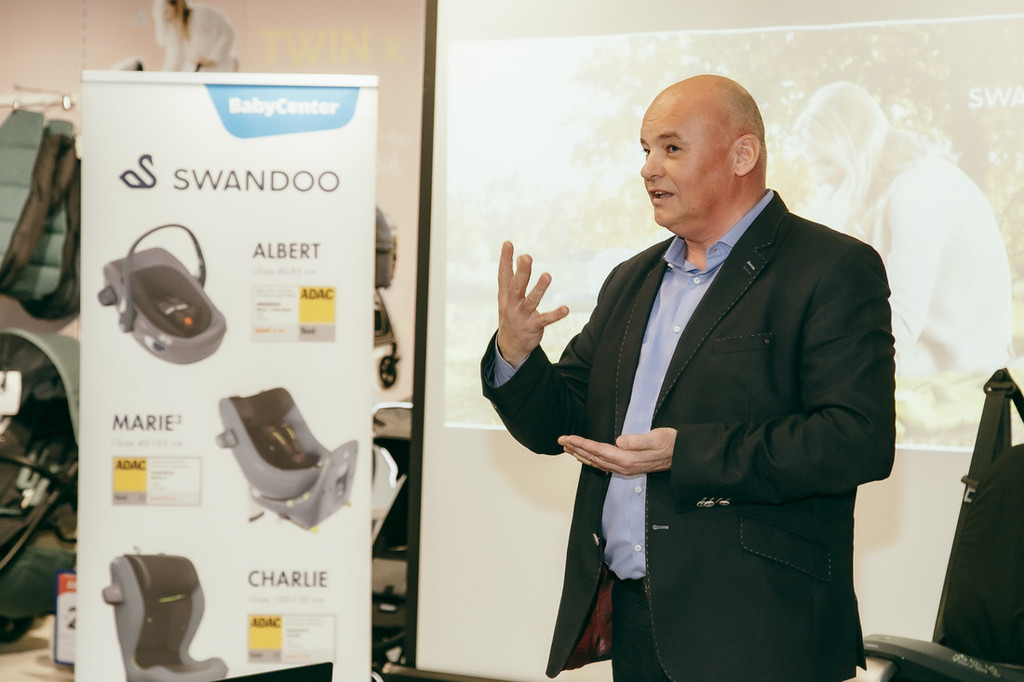 Swandoo, je povedal: »Veseli me, da pri starših vse bolj narašča ozaveščenost o pomenu izbire kvalitetnih avtosedežev. Temu povpraševanju sledi tudi ponudba v Baby Centru, ki smo ji letos dodali še Swandoo z zelo dobro oceno na ADAC testih (Marie, sedež za starostno kategorijo od rojstva do 4 leta, je bil nagrajen z „Najboljši v kategoriji“), in modeli nagrajenimi tudi na RedDot in iF Design.« Vsi avtosedeži morajo ustrezati zakonodaji, a Swandoo te standarde krepko presega. Zagotavlja