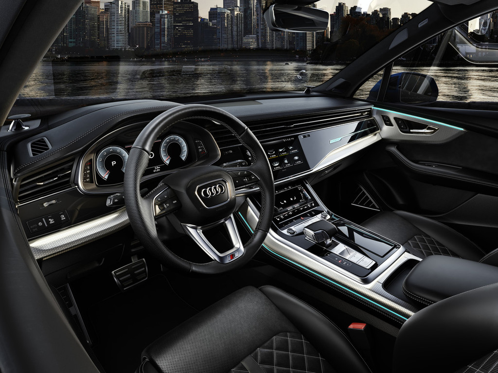 S prenovo modela Q7* je Audi še bolj izpopolnil program opreme. Šivi sedežnih prevlek za osnovni model so zdaj serijski in izvedeni v sivi kontrastni barvi. Poleg tega je na izbiro devet vrst dekorativnih elementov. Novost v programu: srebrn naravni jesenov les za osnovni model, matirani krtačeni aluminij s srebrno vtisnjeno linijo in matirana karbonska izvedba s strukturo kepra za model Q7* s športnim paketom S line in za model SQ7 TFSI*. Za še večjo prilagoditev modela