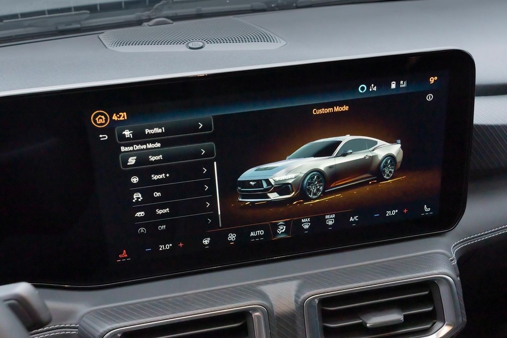 Ford je podvojil računsko moč informativno-razvedrilnega sistema za novega Mustanga. Sistem SYNC 43 se prilagaja tako, da prikaže funkcije, ki jih posamezni voznik najpogosteje uporablja. Integracija pametnih telefonov z vmesnikoma Apple CarPlay in Android Auto4 je brezžična. Povezljivost 5G5 podpira pretočno predvajanje glasbe prek odličnega zvočnega sistema B&O in z oblakom povezano navigacijo (na izbranih trgih) za posodobitve informacij o prometu v realnem času.