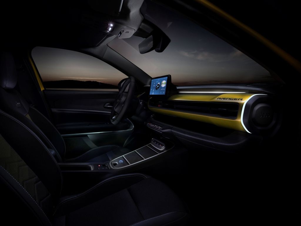Funkcionalno oblikovanje je najbolj opazno v potniški kabini. Minimalistična in trpežna notranjost modela Avenger je zasnovana v slogu legendarnih modelov znamke Jeep, zlasti modela CJ iz petdesetih let prejšnjega stoletja in Wranglerja. V notranjosti pogled pritegne zgornji del armaturne plošče, kjer izstopa vodoravni »svetlobni snop«, ki zajema vse ukaze. Nad njim je široka odprta odlagalna polica, velik sredinski zaslon pa je dobro viden tako vozniku kot sopotnikom. Novi