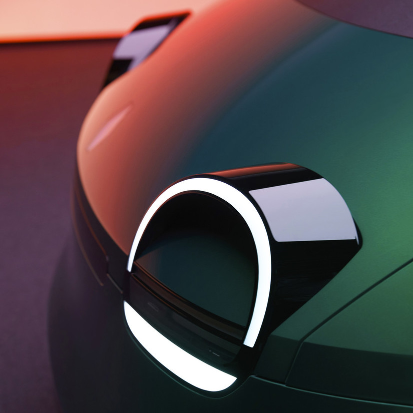 Twingo E-Tech electric prototype je več kot le avtomobil, saj ima prepoznaven obraz. Ta je izrazen in prikupen zaradi žarometov in potez prednjega dela, na katere »sedi« zaščitni znak znamke. Celota vzbuja močan vtis povezanosti in domačnosti.