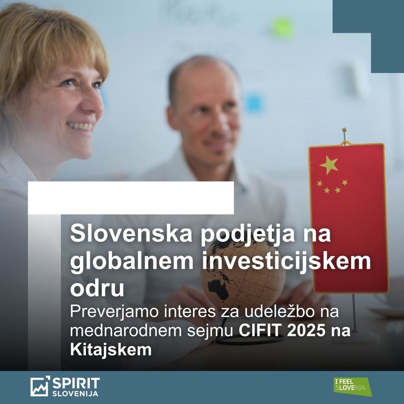 13. 8. 2025 - Javna agencija SPIRIT Slovenija septembra organizira sejemsko predstavitev slovenskih podjetij na kitajskem mednarodnem sejmu investicij in trgovine CIFIT 2025 Xiamen in gospodarsko delegacijo s poudarkom na električni avtomobilski industriji. Podjetja lahko interes za udeležbo sporočijo do 15. avgusta 2025. Namen obeh aktivnosti je promocija slovenskega gospodarstva na kitajskem trgu, s posebnim poudarkom na umeščanju slovenskih podjetij iz avtomobilske industrije v kitajske dobavne verige ter spodbujanju investicij kitajskih podjetij v slovensko gospodarstvo.