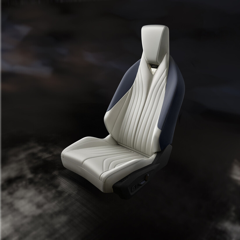 Kombinacija notranjosti v tkanini DS sive barve Perle in modre barve Éternel je dvobarvna kombinacija, ki združuje nežno sivo barvo Perle in prodorno modro barvo Éternel. Prispeva k umirjenemu in svetlemu vzdušju. Tkanina DS vsebuje biserno nit v mavričnem odtenku, ki poskrbi za eleganten in prefinjen biserni učinek. V potniškem prostoru ta svetla barva ustvari harmonični kontrast z modro Éternel.