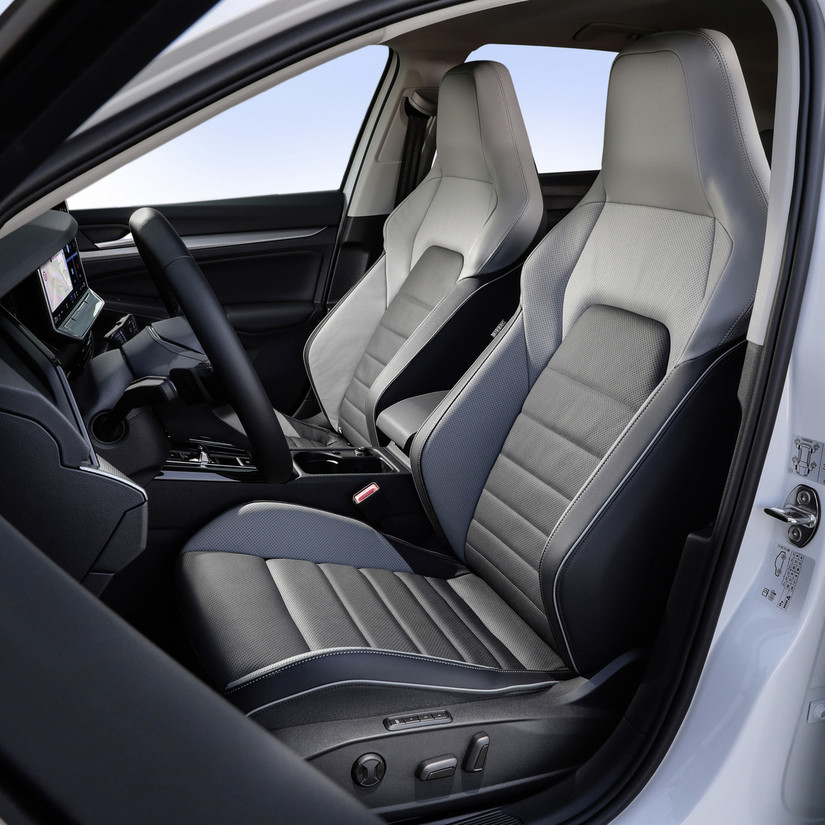 Prenovljena sprednji in zadnji del ter nov dizajn luči. Novi Golf in novi Golf Variant1 sta prepoznavna po sprednjem delu, ki je oblikovan na novo. Vizualno še posebej izstopajo (pri Golfu prvič) osvetljeni znak VW2 in novozasnovani LED-žarometi. Ti so pri najbolj izpopolnjeni izvedbi modela realizirani kot matrični LED-žarometi IQ.Light2 z novimi visokozmogljivimi dolgimi lučmi z dosegom do 500 m. Prav tako na novo so bile pri obeh izvedbah karoserije oblikovane zadnje 3D LED-luči IQ.Light2. Nov svet infotainmenta in integriran ChatGPT. V notranjosti modelsko serijo zaznamujejo na novo zasnovan infotainment sistem z intuitivnim upravljanjem in vizualno prostostoječim zaslonom (diagonala do 32,8 cm)2, pod katerim sta ergonomsko optimizirana in osvetljena drsnika na dotik za uravnavanje temperature in glasnosti.