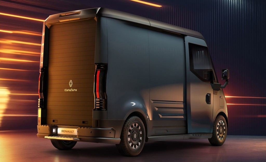Estafette E-Tech electric ima funkcije, ki so zamišljene za poklicne uporabnike v urbanem okolju, kot so drsna bočna vrata z nevidno vgrajeno tirnico, ki omogoča gladko odpiranje. Stopnici na obeh straneh olajšujeta vstopanje in izstopanje iz vozila in izboljšujeta ergonomičnost za uporabnike. Zadaj enodelna roleta omogoča optimizacijo tovornega, stopnica iz nerjavečega jekla pa podčrtuje čvrst in tehnološki značaj vozila. Črne zaščitne obloge zrnato površine na zgornjem in spodnjem delu karoserije na videz zmanjšujejo višino vozila in mu s tem dajejo dinamičen in moderen pridih. Ti črni elementi tudi okrepijo čvrstost karoserije, saj zagotavljajo optimalno zaščito za intenzivno rabo v urbanem okolju. To novo paleto vozil bodo izdelovali v tovarni Sandouville v Franciji, na trg pa bo prišla od leta 2026. Več podatkov o teh vozilih bo razkritih na prihodnjih mesecih.