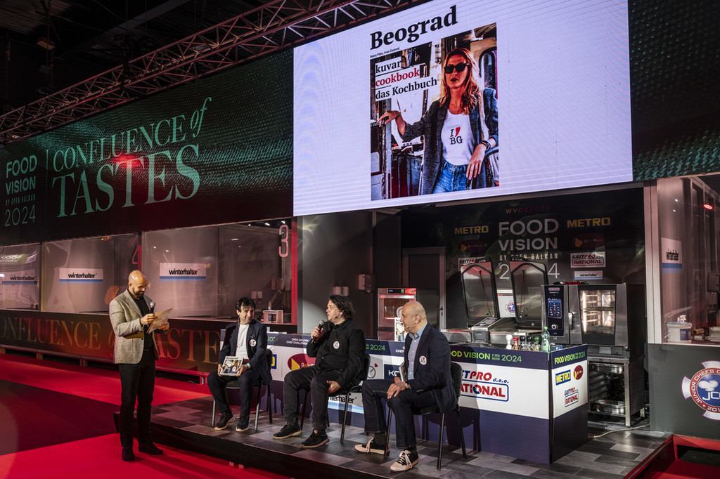 V nadaljevanju je chef Kavčič poudaril pomen inovativnega pristopa k tradicionalnim sestavinam in dodal, da balkanska kuhinja, postaja vse bolj prepoznavna na globalnem kulinaričnem zemljevidu. "Srbija ima vse možnosti, da postane ključni igralec v svetu kulinarike," je dejal Kavčič, ki verjame, da srbska kuhinja ponuja izjemne sestavine in ima velik potencial. "Najboljši paradižnik, ki sem ga kdaj jedel, sem jedel v Beogradu," je povedal. Ob tej priložnosti je chef Kavčič izpostavil uspeh ajvarja, pripravljenega na inovativen način, ki je navdušil tudi umetnico Marino Abramović, ko jo je chef postregel v Cukrarni. Pripravil je kozarčke z ajvarjem in kremo iz slovenskega mladega sira, na vrhu pa je s svojo molekularno kuhinjo ustvaril nadev kaviarja iz ajvarja. Tako imenovani "kajvar" je umetnico tako prevzel, da sta se ga odločila skupaj predstaviti širši javnosti in ga na željo Abramovićeve že prihodnje leto postaviti na trgovske police.