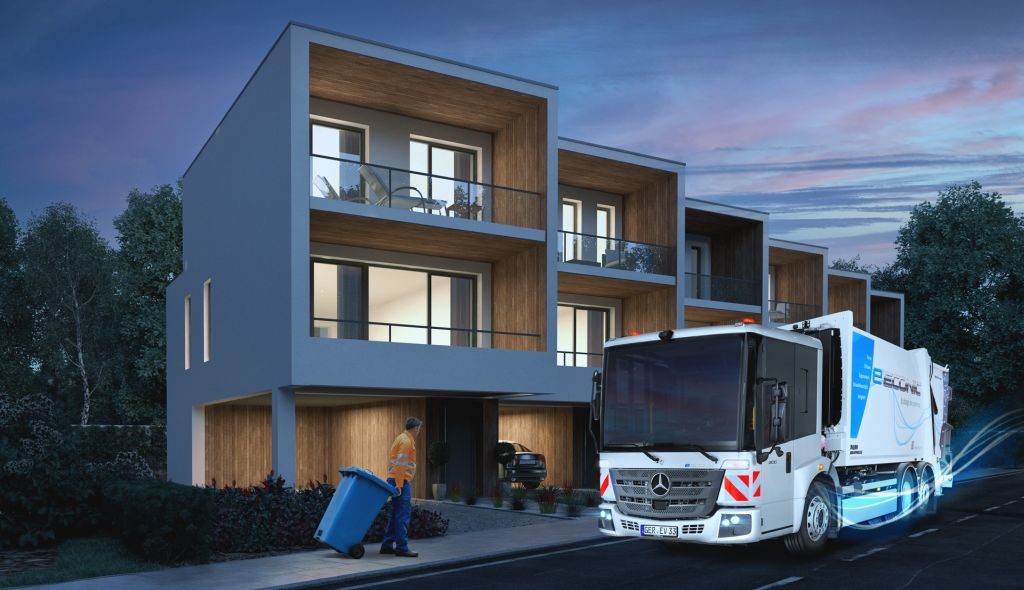 Zainteresirani bodo na razstavnem prostoru videli tudi popolnoma električni Mercedes-Benz eEconic 300 z osno konfiguracijo 6x2 kot šasijo. Za osnovno vozilo je v primerjavi s konkurenco značilna posebej nizka masa praznega vozila. Brez nadgradnje si lahko obiskovalci bolje ogledajo pogonsko arhitekturo vozila. eEconic se uporablja predvsem v mestni in komunalni uporabi kot vozilo za zbiranje odpadkov, kjer lahko dokaže svoje prednosti zaradi izboljšane nosilnosti. eEconic kot vozilo za zbiranje odpadkov si lahko ogledate pri proizvajalcih karoserij na prostem v Mitteju, Zöllerju (stojnica 710/5), FAUN (stojnica 712/5) in Terberg HS (713/15).