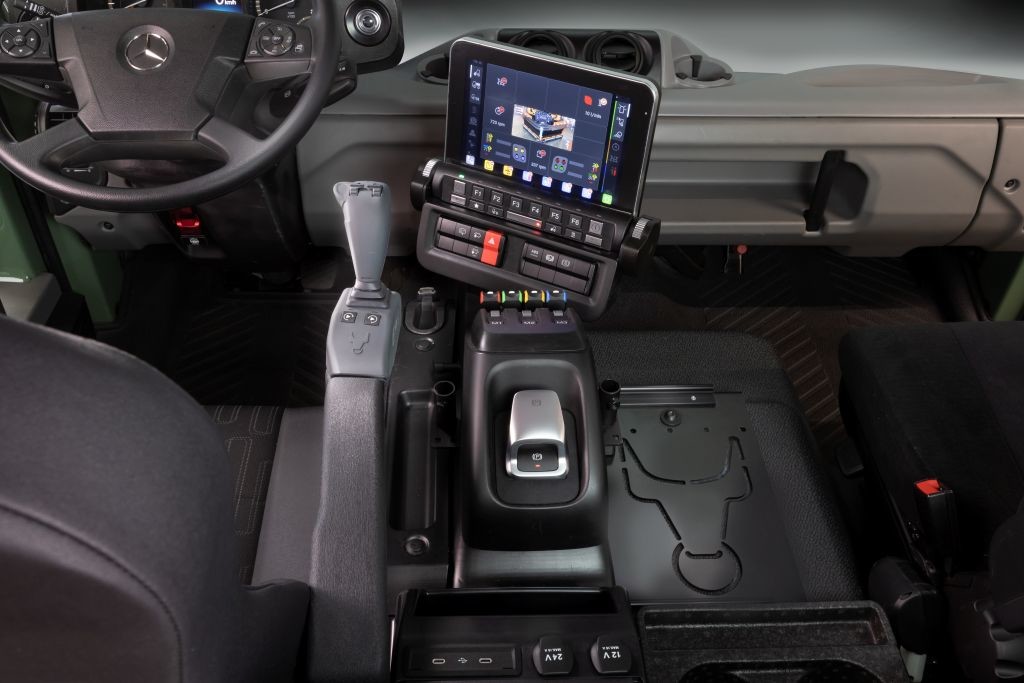 V prihodnosti bo skoraj vse priključke, ki so na voljo za Unimog, mogoče upravljati prek novega operacijskega sistema UNI-TOUCH. Novi operacijski sistem lahko nadomesti nadzorne plošče za posamezne naprave in naredi upravljanje bolj ergonomsko in intuitivno. Sredinska konzola je bila temeljito preoblikovana, zasnovana tako, da je tanjša in jo je mogoče premikati bočno in vzdolžno. Število kontrolnikov bi lahko zmanjšali, da bi prihranili prostor, zahvaljujoč možnosti individualnega dodeljevanja gumbov in shranjevanja profilov aplikacij in ponavljajočih se procesov. Uporabnik lahko uporablja 10,5-palčni (26 cm) zaslon na dotik, da izvede ustrezne nastavitve za posamezno delovno aplikacijo. Zaslon je mogoče vrteti in nagibati za prilagodljiv kot gledanja.