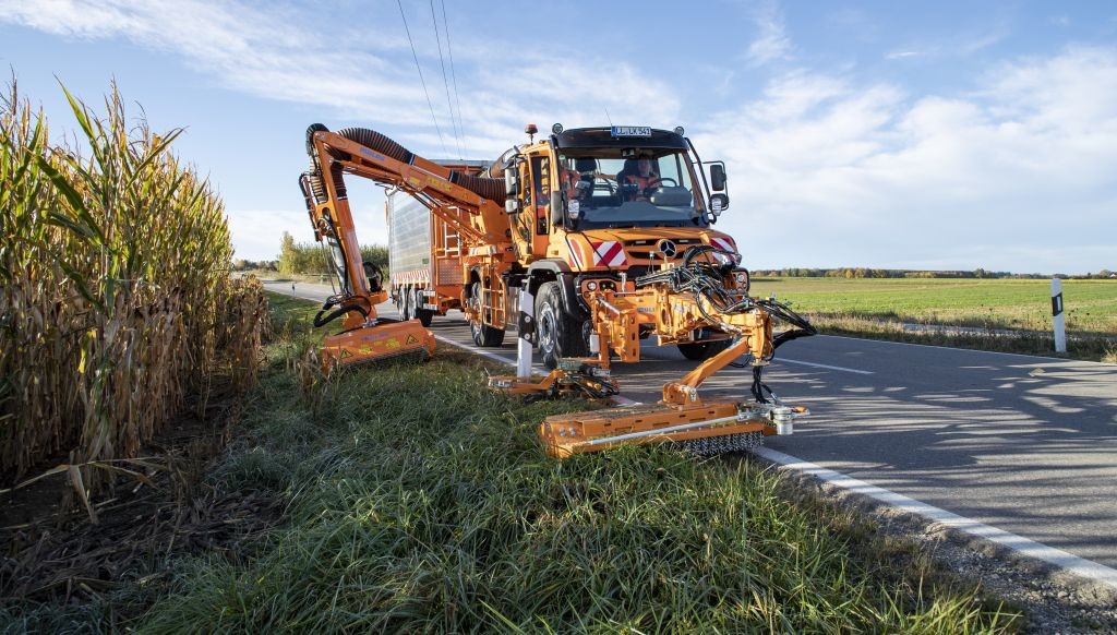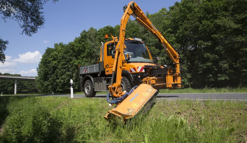 Razstavljeni Unimog je opremljen s kombinirano kosilnico/rezalnikom na sprednjem delu vozila in avtomatskim trosilnikom. Kosilnica s sprednjo roko Mulag MFK 500 ima doseg šest metrov (sedem metrov s teleskopom) in se lahko uporablja na obeh straneh. Pogon poteka bodisi preko pogonske hidravlike vozila bodisi preko sprednje kardanske gredi. Rezalnik FSG 2000 podjetja Mulag se lahko uporablja za obrezovanje vej in grmovja ter čiščenje cest in železniških tirov. Nastavek je mogoče z malo truda namestiti na sprednjo montažno ploščo Unimoga.