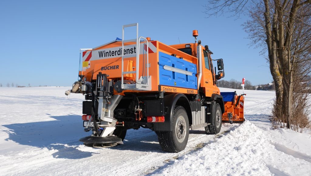 Avtomatski posipalnik Yeti W22 Omega podjetja Bucher Municipal, ima dodatni rezervoar za slanico, ki je vgrajen v rezervoar posipalnika med dvema vijačnima transporterjema. Posipalnik tako ponuja enako prostornino za suho snov (sol za posipanje cest) in slanico: 2,2 m³ ali 2.200 litrov. To omogoča uporabo mokre soli s 50 % vsebnostjo slanice (FS 50). Zaradi povečane vsebnosti slanice je odmrzovanje učinkovitejše in okolju prijaznejše, saj podaljša čas delovanja mokre soli in zmanjša njeno odnašanje. Po potrebi lahko kupec to tehnologijo uporabi tudi za trošenje čiste slanice (FS 100). Za poletno delo lahko dodatni rezervoar služi kot razpršilnik vode za zalivanje in čiščenje. Druga prednost serije Yeti Omega je nizka skupna višina zahvaljujoč inovativni tehnologiji dvojnega vijaka, ki zagotavlja nizko težišče in odlično vsestransko vidljivost.