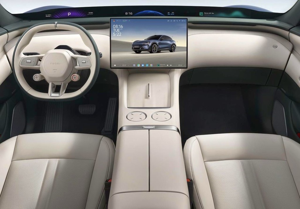 Notranjost Xiaomi YU7 se ponaša s čisto, neprekinjeno vidno linijo. Prednja armatura uporablja večplastno zasnovo, ki visoko integrira zračne blazine, zaslone in skrite zračne reže. Postavitev je skrbno optimizirana za ustvarjanje vitke armature, ki je postavljena nižje in bolj naprej, kar zmanjšuje občutek masivnosti, značilen za tradicionalne SUV-je. To izboljšuje športni občutek in povečuje občutek prostornosti. Poleg tega ima streha standardno 1,7 m² panoramsko strešno okno, ki nudi