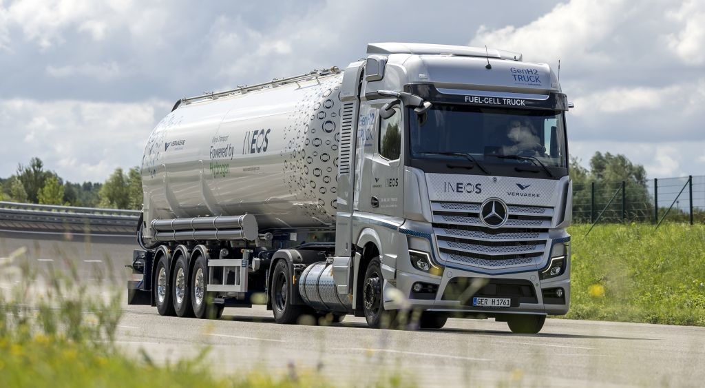 plinastem stanju tudi cenejši in lažji. Uporaba tekočega vodika tako med drugim omogoča večjo nosilnost. Zaradi tega je tovornjak Mercedes-Benz GenH2 enako primeren kot običajni dizelski tovornjaki za prilagodljiv in zahteven daljinski promet. Družba Daimler Truck je to uspešno dokazala septembra 2023, ko je prototip tovornjaka Mercedes-Benz GenH2, odobrenega za javne ceste, opravil #HydrogenRecordRun in s polnim rezervoarjem tekočega vodika v vozilu prevozil 1047 km.