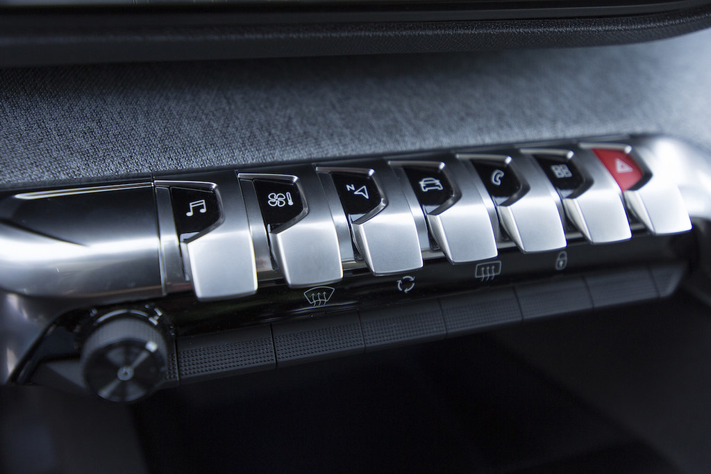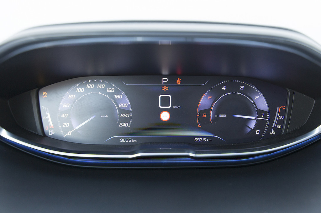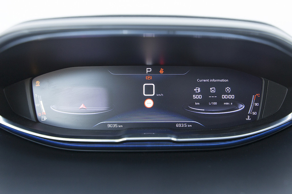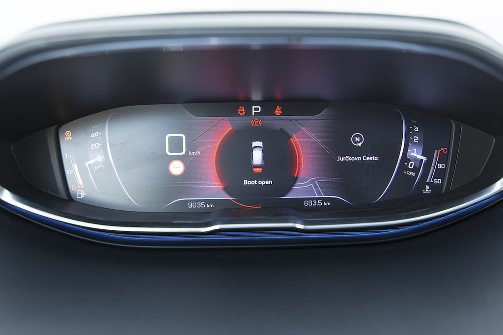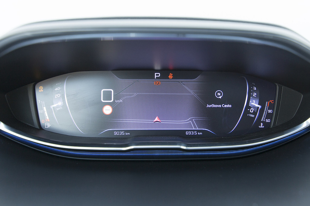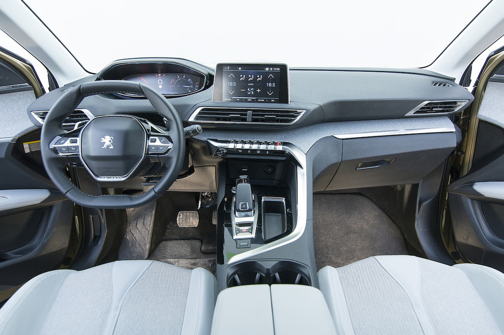 Novi 3008 poleg naštetega ponuja še prostorno in futuristično oblikovano notranjost. Hvalimo atraktivne in drzne poteze armaturne plošče, kakršne smo še pred kratkim lahko videli le pri konceptih. Gre za evolucijo zasnove i-Cockpit, poznane iz modela 308, ki jo označujeta visok položaj instrumentne plošče in razmeroma majhen volanski obroč. Tokrat je klasične merilnike zamenjal barvni zaslon. Na vrhu armaturne plošče je nameščen prostostoječi 20,3-centimetrski (8-palčni) zaslon na dotik, pod njim pa klasična stikala, ki smo jih pogrešali pri tristoosmici. Na visokem sredinskem grebenu je nenavadno oblikovana prestavna ročica samodejnega menjalnika, ki dobro opravlja svojo nalogo.