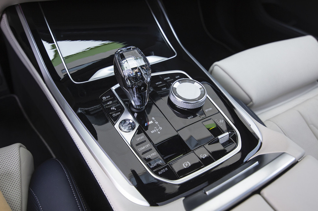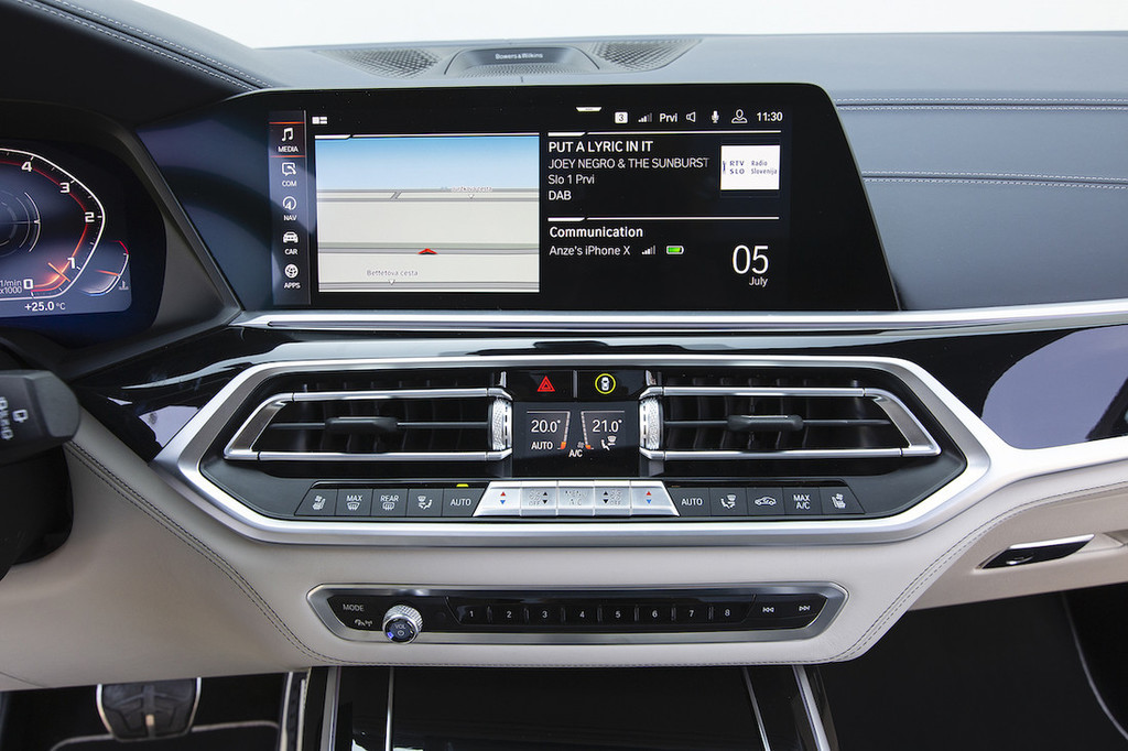 Bavarci so namreč združili znane elemente, seveda najboljše, kar jih premorejo – torej predvsem tiste iz serije 7 in 8, svojih drugih dveh kronskih modelov. Vključno z resnično vrhunskimi materiali in brezhibno izdelavo. Da, luksuz na najvišji ravni, a ponovno: digitalni merilniki niso ravno med najbolj estetskimi, predvsem smo pogrešali več unikatnosti pri notranjem oblikovanju, kakšno piko na i, ki bi jasno dala vedeti, da ne sedite le v večjem (in dražjem) X5. Ja, tudi umetelna (za nekatere sicer kičasta) prestavna ročica v stilu brušenega kristala ni nič posebnega …