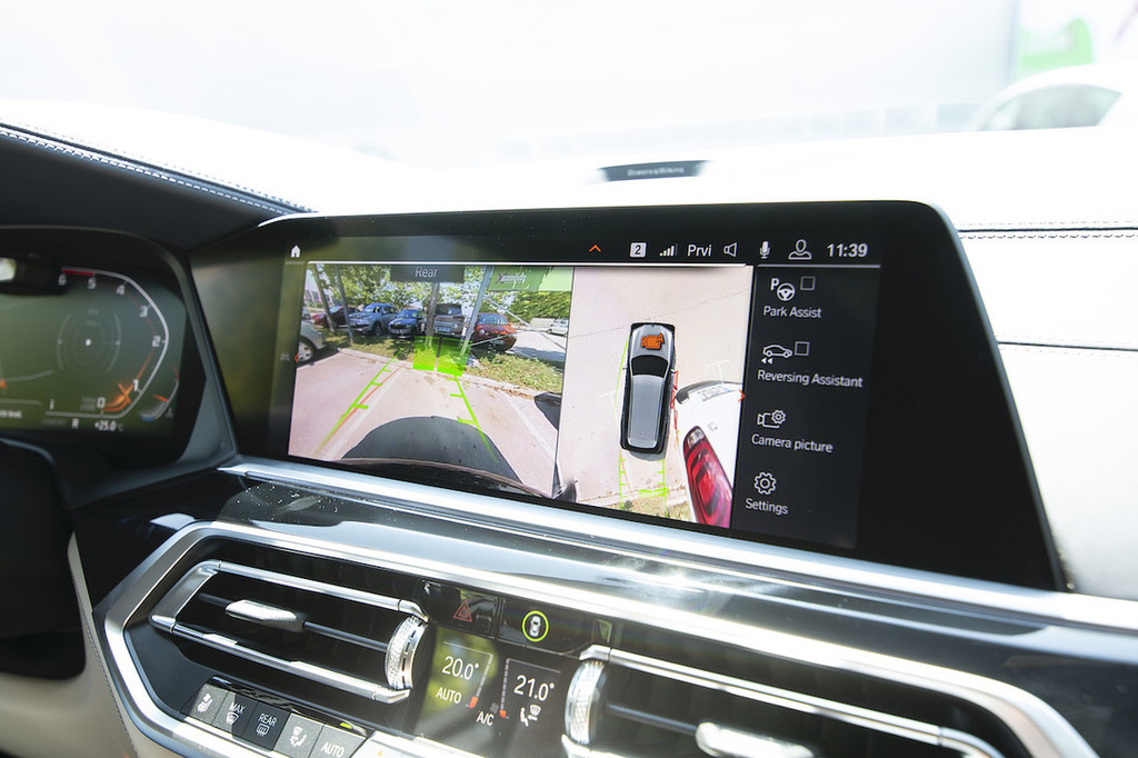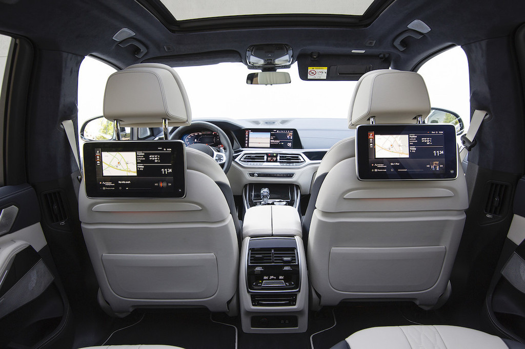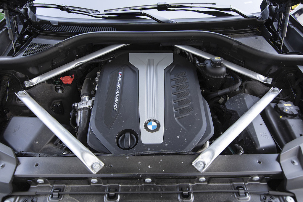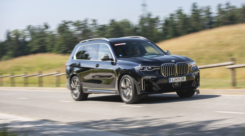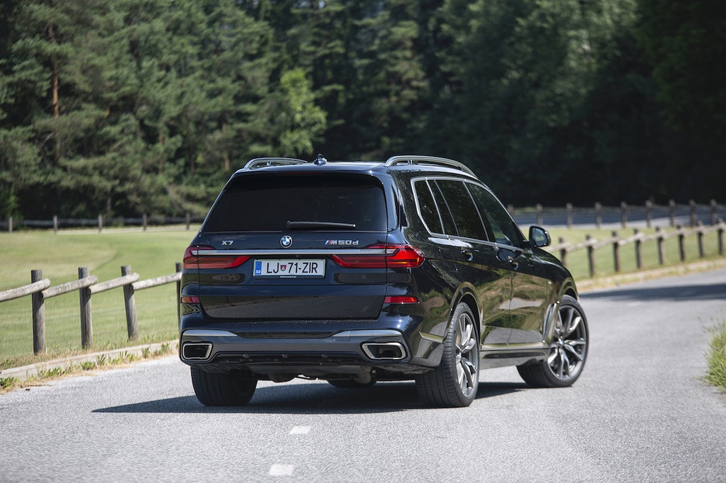Preizkusili smo najmočnejšo različico M50d, kar pomeni trilitrski šestvaljni dizel, podprt kar s štirimi turbopolnilniki. Dva delujeta pri nizkem in dva pri visokem tlaku, rezultat pa je največja moč 294 kW (400 KM) in kar 760 Nm navora, katerega krivulja svoj vrh doseže med dvema in tremi tisočaki. To je dovolj, da več kot 2,5-tonski orjak do stotice pospeši v le 5,4 sekunde, ob pritisku na stopalko za plin butne v hrbet in odločno vztraja vse do pri 250 km/h omejene največje hitrosti. Zvočna zatesnjenost je odlična, 8-stopenjski samodejni menjalnik še vedno nedvomno najboljši ta hip. Testni avtomobil je bil poleg zračnega vzmetenja z možnostjo nastavljanja višine vozila med drugim opremljen še z dodatnim sistemom z zvenečim imenom Executive Drive Pro – aktivnimi stabilizatorji, ki v ovinkih in med vožnjo po slabši podlagi zmanjšajo nihanje in nagibanje vozila. V udobnem režimu je nihanja morda res malce več (a daleč od tega, da bi zaradi njega staknili morsko bolezen), samodejni in športni način vožnje pa sta odlična kombinacija udobja in dinamike. Svoje doda integralno aktivno krmiljenje, ki za povrh občutno zmanjša obračalni krog in okretnost. Vseeno je v mestu pravi kolos in pri parkiranju še kako prav pride odličen sistem kamer za nadzor celotne okolice vozila (vključno s pogledom s ptičje perspektive), za povrh zna zadnjih 50 prevoženih metrov samodejno prevoziti vzvratno. Popolnoma po isti poti, kot ste se vi peljali naprej. Lahko tudi naslednji dan. Sicer pa je prav neverjetno, kako dobro se kljub veliki masi pelje X7 – bodisi pri priganjanju skozi ovinke bodisi po zahtevnejšem terenu. Na Nürburgringu bojda zlahka drži korak s prejšnjo generacijo M3 (E90 z motorjem V8), po drugi strani pa brez težav brodi po pol metra globoki vodi.