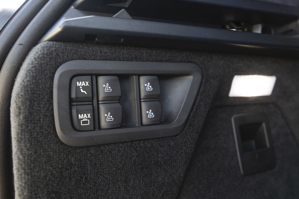 Zato pa je prostora resnično ogromno in sedežev je že v osnovi sedem ali šest v treh vrstah. Testni avtomobil je bil opremljen s sedmimi, torej klopjo v drugi vrsti namesto posamičnih dveh sedežev – klopjo, ki si pravzaprav ne zasluži te oznake, saj gre dejansko za dva radodarno odmerjena in med seboj povezana sedeža. Čeprav sta tista v tretji vrsti prostorsko malce skromnejša, se povsod sedi kraljevsko razkošno in tudi za zadaj sedeče potnike je enako dobro poskrbljeno kot za voznika in sopotnika. Vsi sedeži so električno pomični (in pri tem nadležno počasni), ogrevani, hlajeni, z individualno nastavljivo klimatsko napravo, priključki USB, zasloni LCD, držali za plastenke oziroma pločevinke za pijačo in vsem drugim, kar sodi zraven. Če se malce pošalimo, je edina razlika v tem, da sta sprednji dve držali za pijačo tudi ogrevani ali hlajeni, medtem ko so ostala, kako proletarsko, brez te možnosti … Še beseda o prtljažniku – ta je temeljito obdelan in ob petsedežni postavitvi sprejme razkošnih 750 litrov. Vrata se odpirajo v dveh delih – torej se spodnji odpre navzdol, kar otežuje dostop do predmetov, ki se utegnejo zakotaliti vse do naslonjal sedežev druge vrste, kot pomanjkljivost naj omenimo še občutljivost v usnje odetih naslonjal za roke potnikov tretje vrste. Hitro bodo opraskana, četudi boste v prtljažniku vozili le torbo za golf.