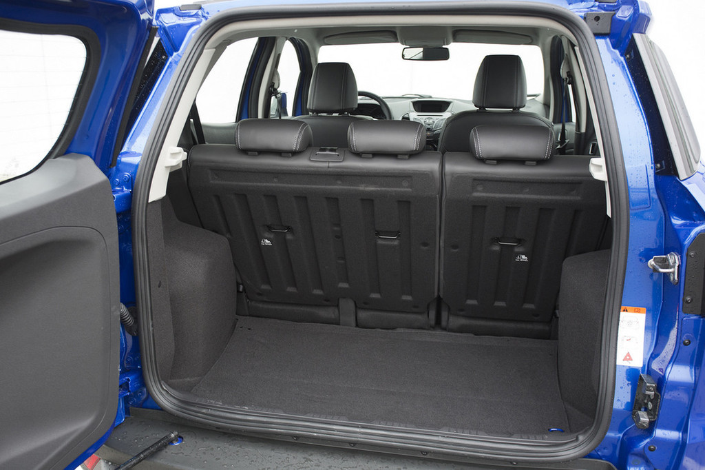 Omenjena vrata so na tesnih parkirnih mestih vse prej kot priročna, čeprav je odprtina precej široka, s 375 litri pa je prtljažnik tudi nadpovprečno prostoren. Podrti nasloni sedežev v drugi vrsti ga povečajo na 1.275 litrov. Če so postavljeni, sprejmejo tri potnike, dodatno prednost pa predstavlja še nastavljiv kot naslonov sedežev. Več kot povprečne prostornosti avtomobil, ki je v osnovi visoko nasajena fiesta, ne more ponuditi, znotraj svojega razreda pa je vseeno nad povprečjem.