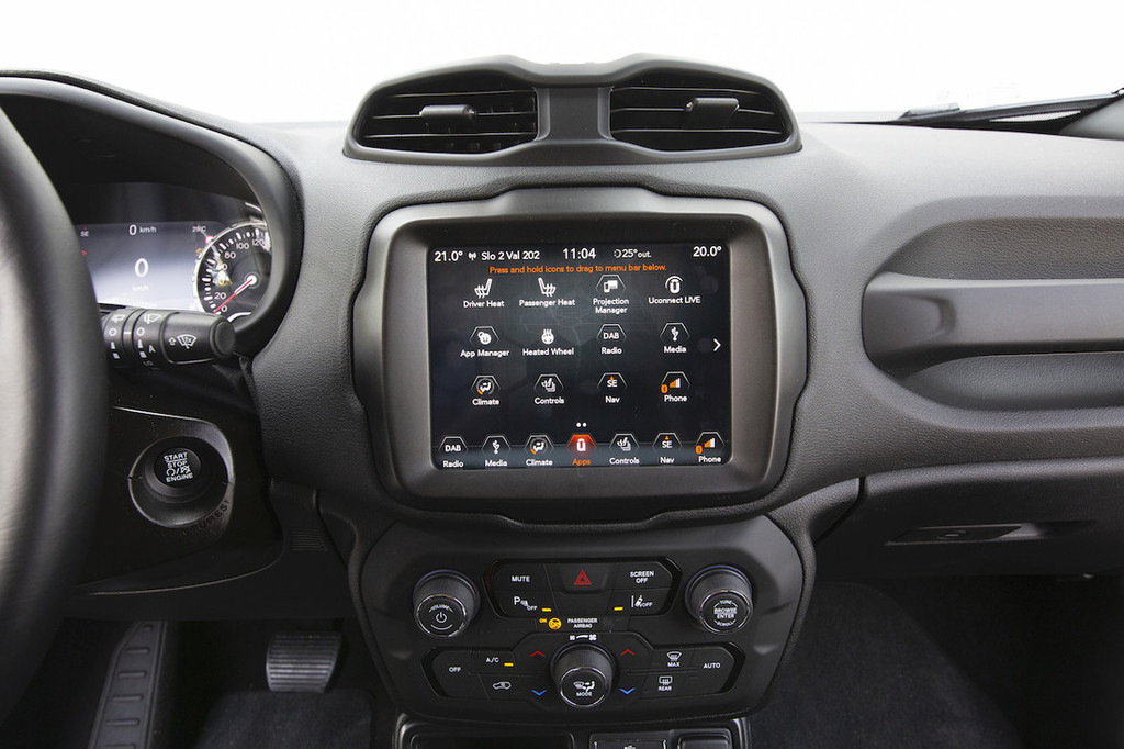 Če je odpadnik na drugih področjih, se je v kabini lepo pokoril zahtevam sodobnih kupcev. Po novem ima več odlagalnih mest, kabina pa je odeta v nekoliko prijetnejše materiale. Tanjša A-stebrička zagotovita boljšo preglednost, ki pride prav, če pozornost ni preveč usmerjena v posodobljen multimedijski sistem uconnect. Ta prvič ponuja možnost zrcaljenja pametnega telefona (Apple Car Play in Android Auto) in je v celem pregleden ter hitro delujoč. Ker so več ali manj vse funkcije v sklopu multimedijskega sistema, je na armaturni plošči malo drugih gumbov. Pod velikim zaslonom na dotik so komande za upravljanje s klimatsko napravo, sicer pa se največ dogaja na volanskem obroču. Tam je gumbov spredaj in na zadnji strani toliko, da bi se zmedel še voznik formule 1, a smo se logike upravljanja hitro privadili. Ob samodejnem menjalniku tako skorajda ni potrebe, da bi med vožnjo roki zapustili volan.