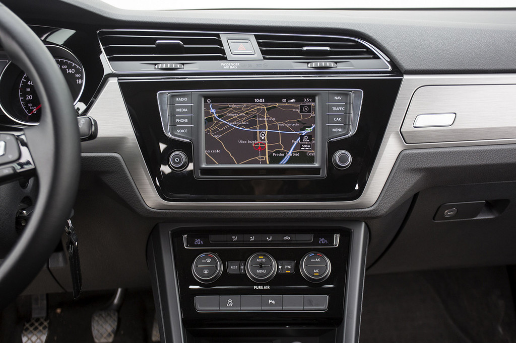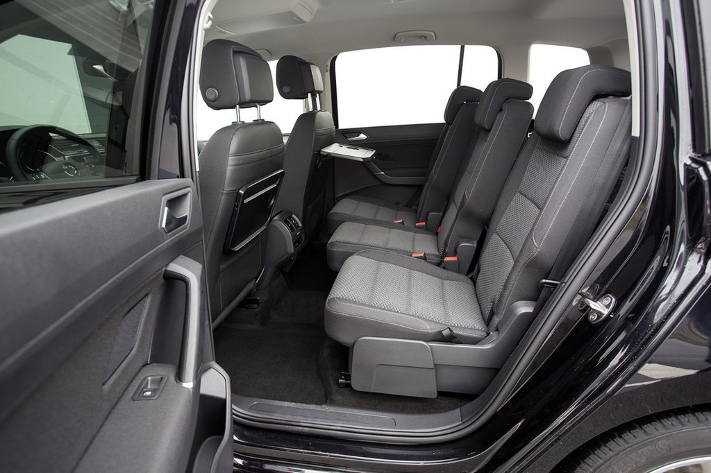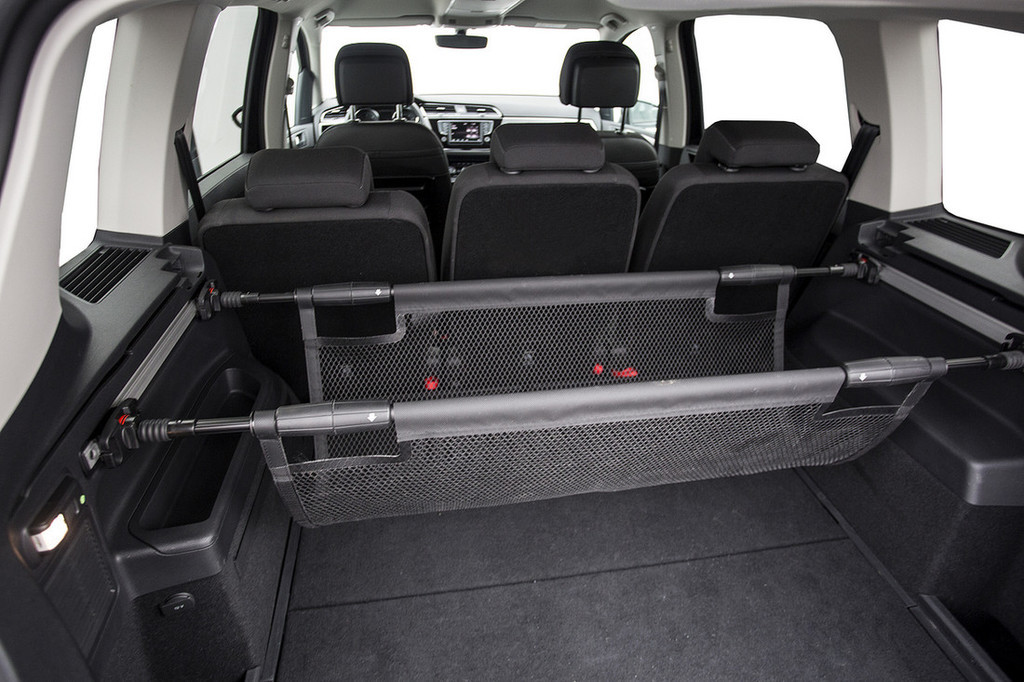 Na uvodno ugotovitev bi zato lahko mirno odgovoril, da je primeren tudi za družino s tremi otroki – ne zgolj zaradi prostorske radodarnosti, temveč tudi zaradi treh posamičnih sedežev v drugi vrsti, od katerih je vsak neodvisno prilagodljiv in zložljiv (in opremljen z zankami sistema isofix), s čimer lahko prostor enostavno prilagajate potrebam oziroma številu potnikov ali prtljagi. Za doplačilo sta na voljo še dodatna dva sedeža, ki se zložita v dno prtljažnega prostora (s tem touran postane sedemsedežnik), testni avtomobil pa je namesto njiju imel v dnu prtljažnika spravljeno nadomestno kolo. Prtljažni prostor je izjemno prostoren in uporabno obdelan – tu so poleg prenosne svetilke še manjši predali ob straneh in kljukice, kamor lahko obesite vrečke z nakupi, pika na i pa je posebna mreža, v katero lahko naložite manjše kose prtljage in s tem preprečite, da bi se ti med vožnjo prosto premikali.