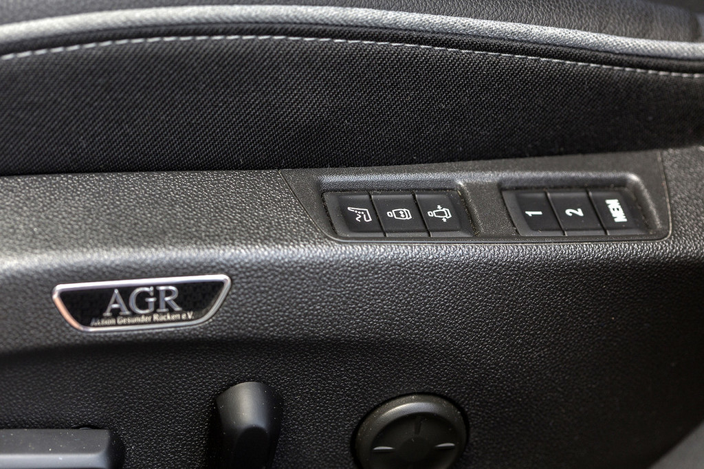 Še več, z izbiro materialov in kakovostjo izdelave se lahko do neke mere spogleduje celo s premium razredom, z doplačilnimi sedeži AGR pa mnoge celo prekaša. Resda je zanje treba doplačati zajetnih 1.900 evrov (usnje stane dodatnih 1.400), a izdatno nastavljivi, radodarno odmerjeni ter ravno prav čvrsti sedeži so opremljeni tudi z ogrevanjem, hlajenjem (palec gor, ko se pri 35 stopinjah Celzija peljete na poslovni sestanek, saj zato tja ne boste prispeli z na hrbet prilepljeno srajco), masažo, nastavljivimi bočnimi oporami …