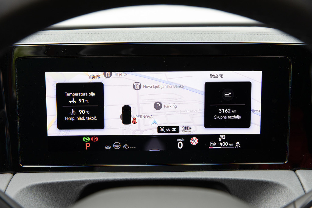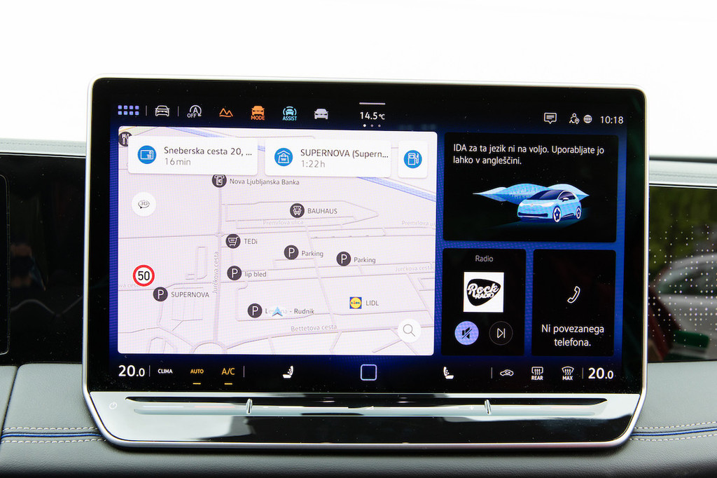 izbira posameznih menijev ter funkcij brezhibno tekoče, za povrh pa je ureditev mogoče izdatno prilagoditi svojim željam. Na zgornji rob si namestite želene funkcije in prilagodite strukturo osrednjih menijev, medtem ko je spodnji rob rezerviran za osnovne funkcije klimatske naprave. Za nastavljanje temperature še vedno skrbijo ne ravno najbolj posrečeni drsniki (ki pa so vsaj osvetljeni), medtem ko je med sedežema nameščen večnamenski vrtljivi gumb za uravnavanje glasnosti avdiosistema ali