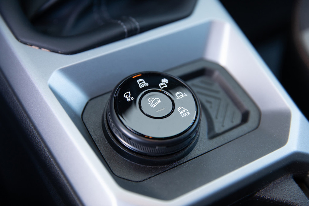 auto, vožnji na zahtevnejših podlagah oziroma terenskim podvigom pa režimi sneg, blato/pesek in lock s stalnim razmerjem prenosa moči med sprednjo in zadnjo osjo, pri čemer ne gre za kakšno vrsto električnega, temveč za klasičen mehanski štirikolesni pogon.