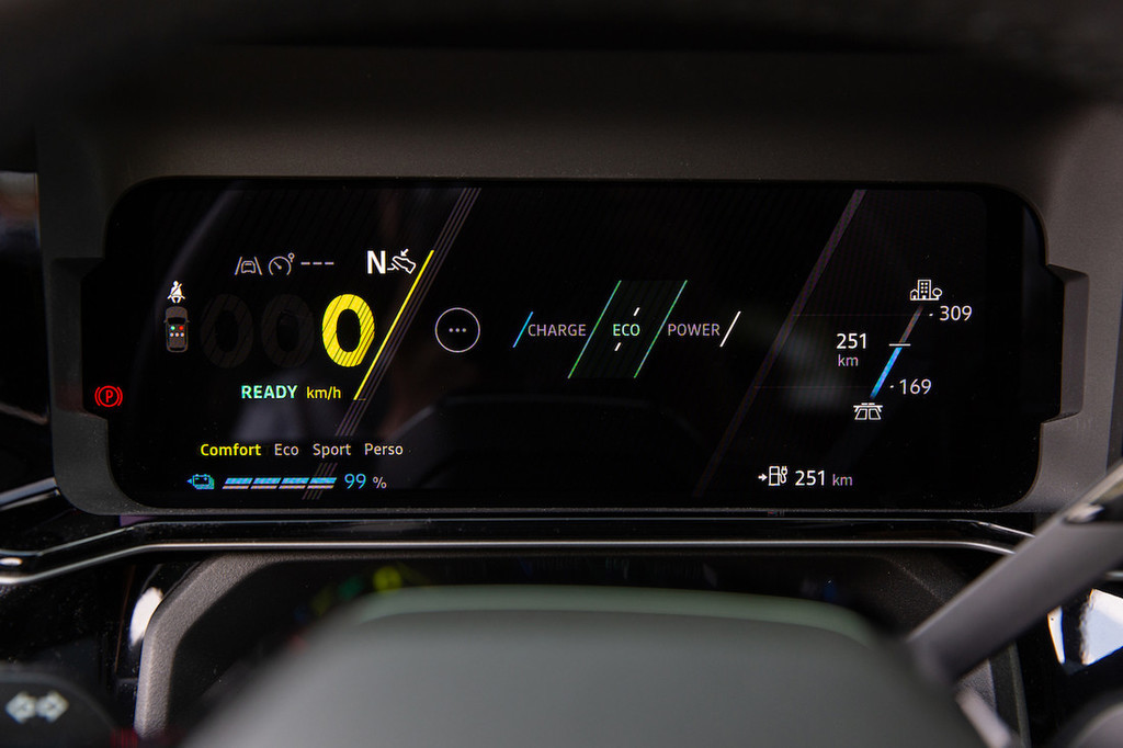 nasajena skrbi za izbiro smeri vožnje oziroma »menjalnik« – to, da je brez parkirne funkcije (P) je nenavadno in terja nekaj privajanja (vklop parkirne zavore s stikalom na sredinski konzoli), prav tako včasih, če ste prehitri, preklapljanje iz D v R »ne prime« (in obratno). Infotainment je znan Renaultov openR link z Googlovo podporo (uporaba vgrajene navigacije računa tudi preostanek baterije na cilju oziroma po potrebi predlaga polnjenje) in kot celota dobro zasnovan tako glede