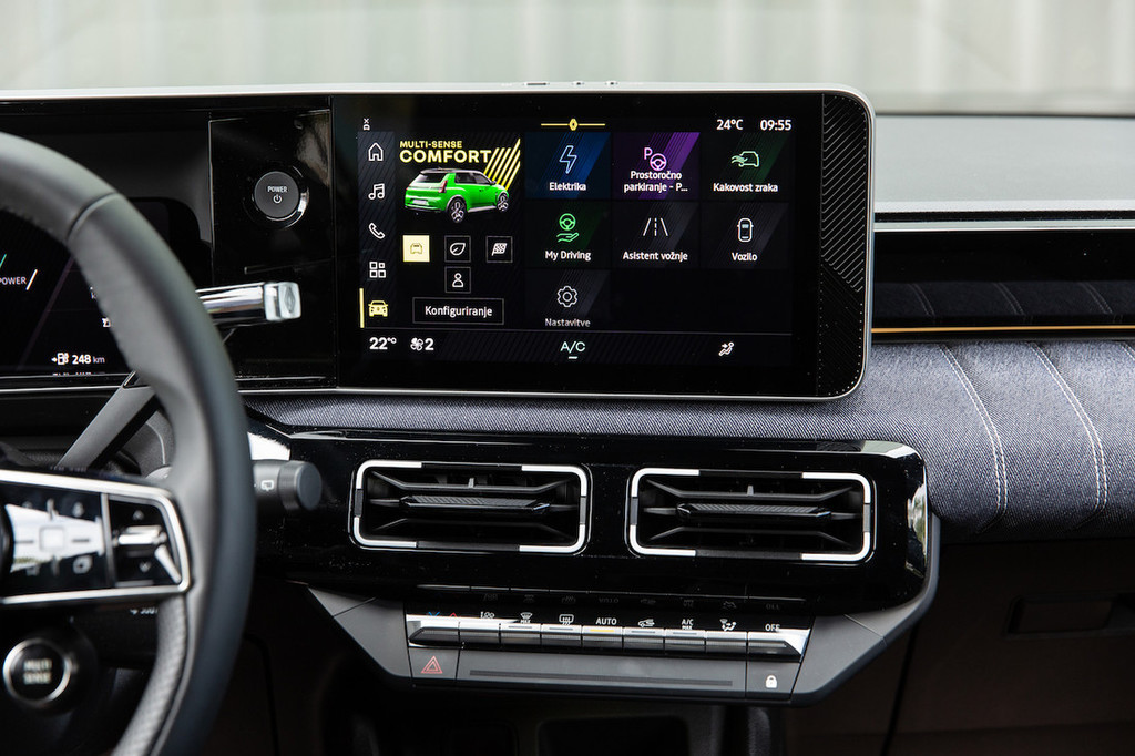 funkcionalnosti kot tudi odzivnosti. Grafika je jasna in ostra, meniji logični, različne nastavitve (comfort, eco, sport in personal) lahko izbirate s posebnim gumbom na volanu. No, stikala so tu žal haptična (na dotik občutljiva površina), je pa zato na sredinski konzoli vrsta klasičnih stikal za upravljanje klimatske naprave.