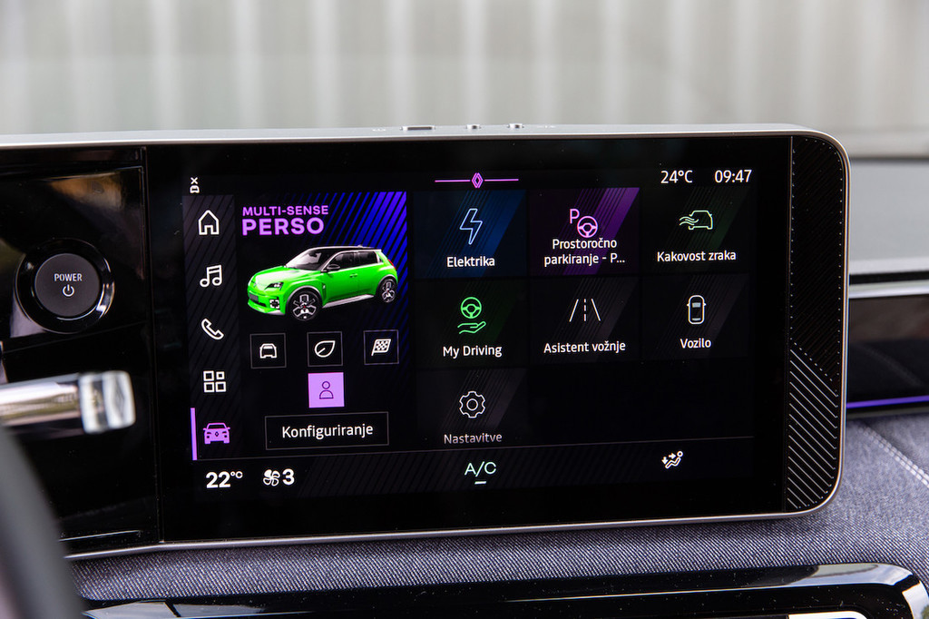 Ta je bila v testnem avtomobilu manjša od obeh razpoložljivih, in sicer litij-ionska s 40 kWh neto kapacitete, ki obljublja okoli 300 kilometrov vožnje z enim polnjenjem – tako na papirju kot tudi v praksi, saj smo med testom zlahka brez težav dosegli to vrednost. Resda pretežno po mestu in okolici, torej na ulicah urbanih središč in podeželskih cestah, kjer se renault 5 tudi najbolje počuti. Avtocesta ga precej bolj utrudi, pa tudi sicer je po svojem značaju predvsem šik mestni avtomobil, ki
