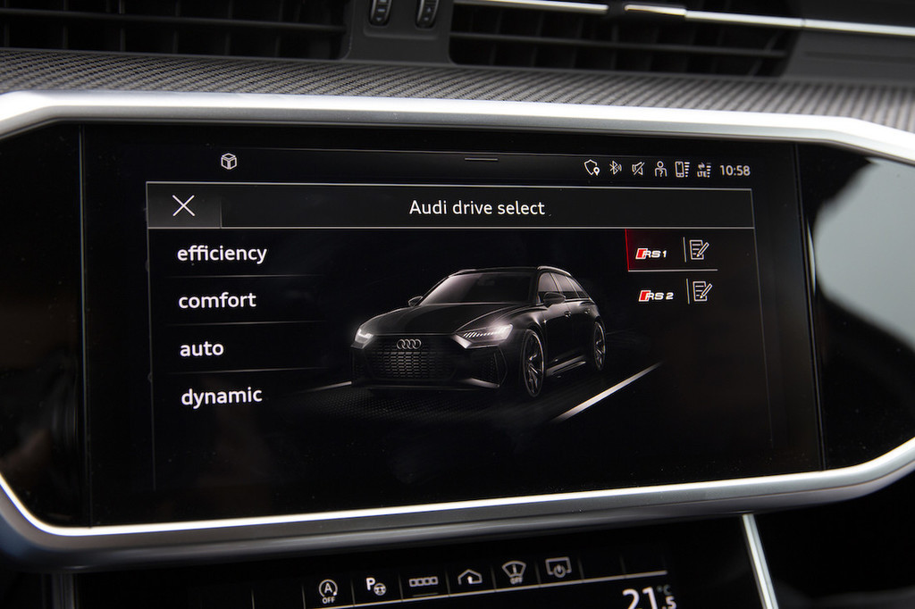 Še bolj impresivno je tisto, kar se skriva pod pločevino. Začenši s štirilitrskim bi-turbobencinskim V8, ki razvije 441 kilovatov oziroma okroglih 600 »konjev« moči in prav tako okroglih 800 Nm navora. To mu omogoča izstreljevanje od 0 do 100 kilometrov na uro v 3,6 sekunde in suvereno doseganje elektronsko omejene hitrosti 250 kilometrov na uro. Toda on zmore veliko več. Njegov potencial pride zares do izraza šele z opcijskim dinamičnim paketom RS plus, ki med drugim prinaša štirikolesni