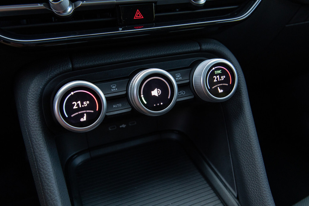 ogledala. Notranjost kot celota pušča vtis kakovosti, k celostno dobri ergonomiji pa svoje prispevajo tudi trije večnamenski vrtljivi gumbi za upravljanje klimatske naprave in drugih funkcij (osrednjemu lahko namenite štiri od šestih možnih funkcij, vključno z glasnostjo avdiosistema, izbire voznega načina in prilagajanjem velikosti zemljevida navigacije), kar je nedvomno precej udobneje od upravljanja prek osrednjega zaslona. Ta meri 33 centimetrov v premeru in se lahko pohvali z logičnimi