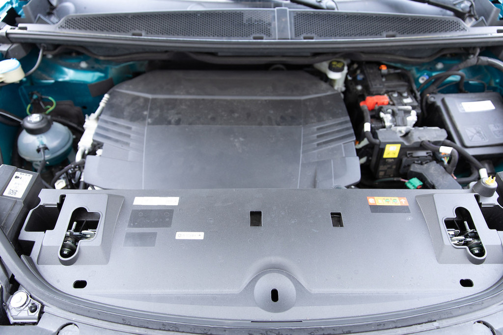 Del nove platforme STLA medium je tudi pogonski sklop. Tega sestavlja elektromotor, ki poganja sprednji kolesi in zmore 157 kW (214 KM) ter 343 Nm največjega navora. Avtomobil z njim lepo potegne, a ni športno hiter. Za to bo treba počakati izvedbo z dodatnim motorjem na zadnji osi. V ovinek gre dobro, saj je podvozje nastavljeno nekoliko bolj na trdo, volan ni najbolj neposreden, najbolj pa se pri tovrstnih podvigih pozna skoraj 2,2-tonska masa vozila. Precejšen del k temu prispeva
