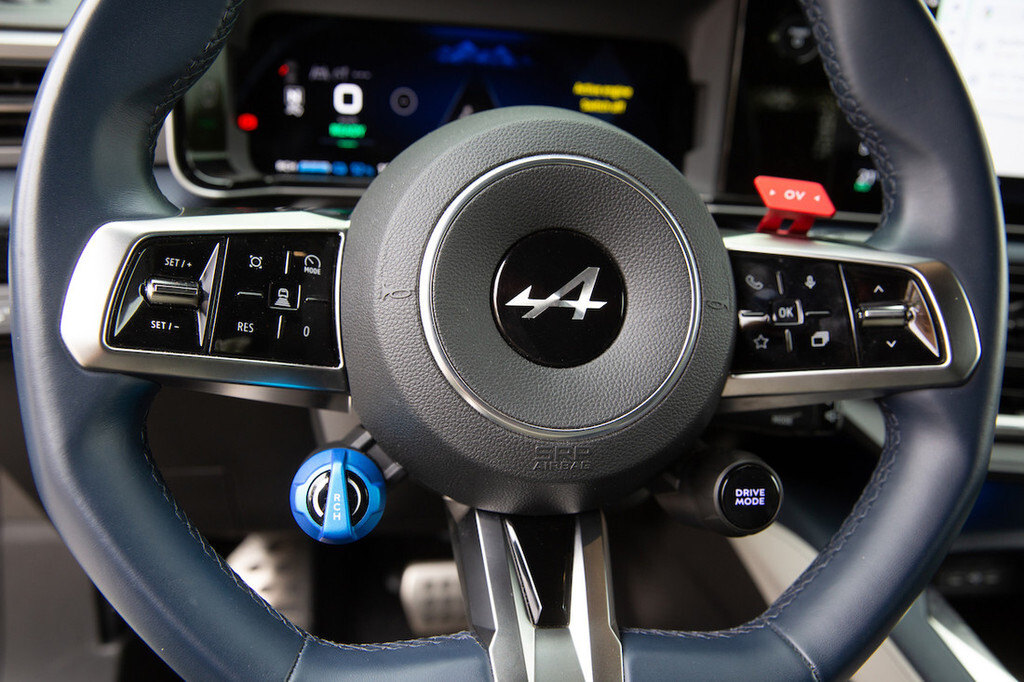 je cesta suha, se je pri višji hitrosti drži kot prilepljen. Nizko težišče in posebej razvite Michelinove pnevmatike opravijo svoje. Celo tako dobro, da se pri Alpine niso kaj veliko ukvarjali s podvozjem. Le nekoliko trše blaženje, a enako oddaljeno od tal kot pri običajni petici. Je pa odzivnejši in natančnejši volanski mehanizem, dobro se obnesejo tudi zavore, kjer prehod med fizičnim zaviranjem in rekuperacijo praktično ni zaznaven. Med priganjanjem po nekoliko bolj zaprtih ovinkih