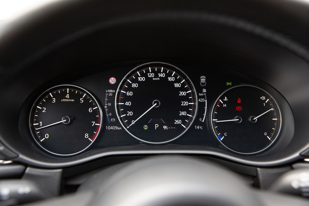 K zmernejši porabi goriva svoje prispevata tudi blaga, 24-voltna hibridna podpora ter samodejni izklop dveh valjev (med vožnjo povsem neopazno, enako vklop) pri manjših obremenitvah, poraba pa je s testnim 7,5 litra v še razumnih, čeprav ne najnižjih okvirih. Tekmeci z majhnimi turbo motorji se resda znajo zadovoljiti s kakšnega pol litra, morda celo litrom manj, zato pa po drugi strani tako motorizirana mazda CX-30 pusti precej suverenejši, zanesljivejši vtis tudi pri večjih obremenitvah in