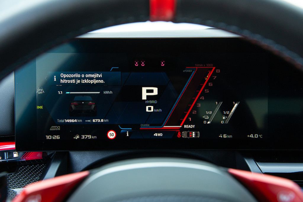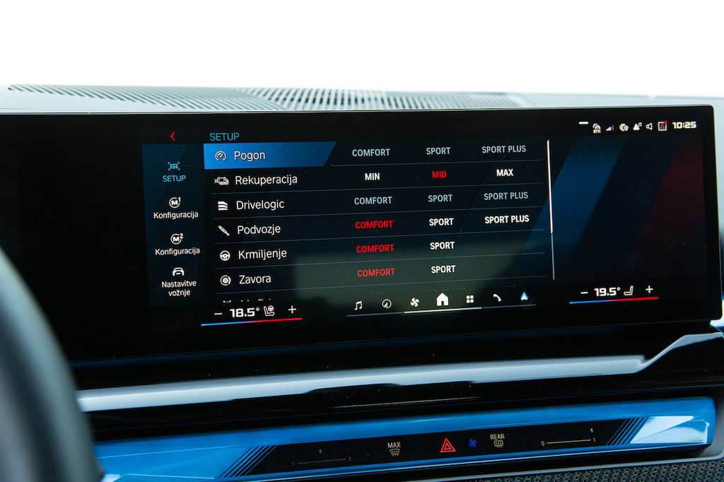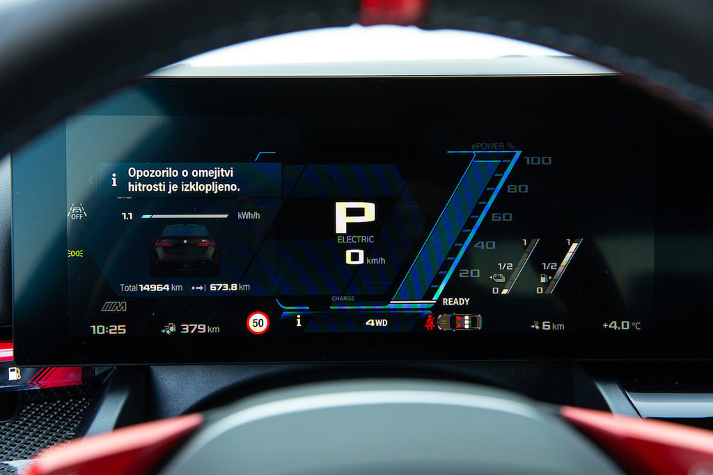 naprave, lahko bila še boljša. Na srečo je za sprehajanje po menijih tu še vedno tudi velik vrtljiv gumb. Bi si pa namesto majhnega izbirnega stikala za samodejni menjalnik želeli klasično prestavno ročico, kot jo imajo na primer M3, M4 in tudi veliki XM. Na ročici je namreč nameščen gumb sistema drivelogic za nastavljanje odzivnosti menjalnika, za kar se je treba pri M5 podati v menije.