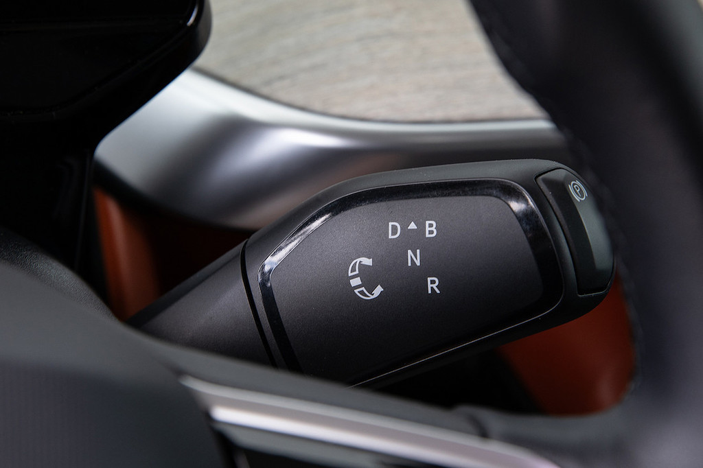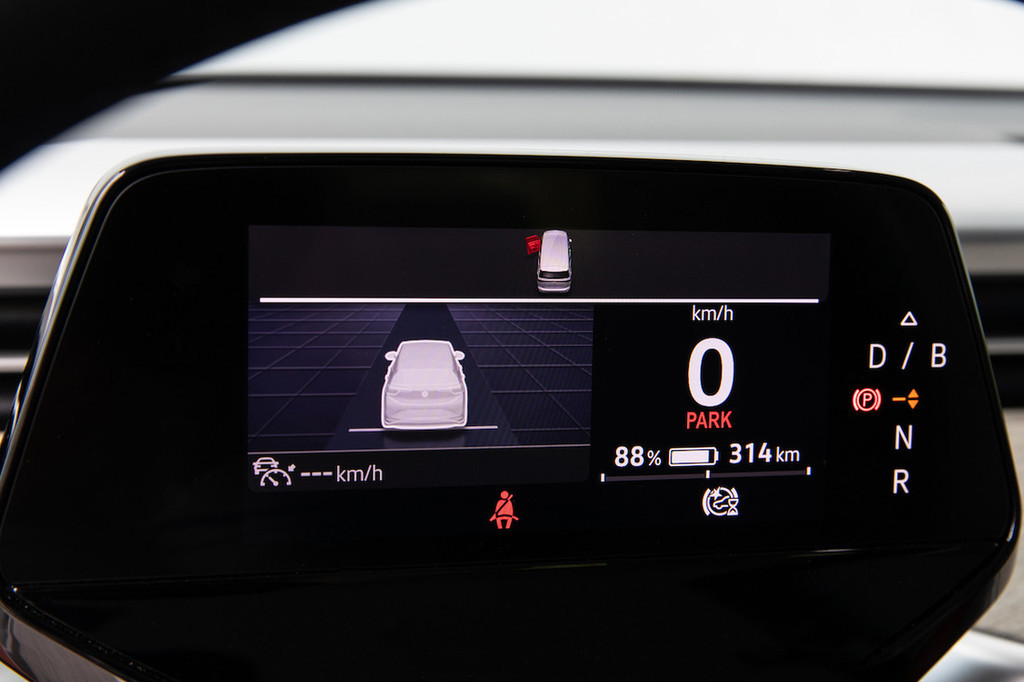 multimedijske naprave in celotnega sistema. Vmesnik, na katerega se je treba malce navaditi, deluje bolj tekoče, kot v prvih predstavnikih družine ID, a še vedno pogrešamo fizične gumbe in stikala, vsaj za upravljanje klimatske naprave. Namesto klasične prestavne ročice je desno ob volanskem obroču nameščeno previsno stikalo, na katerega se brez težav navadimo.