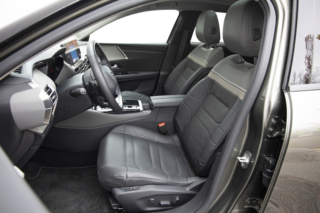 Kaj pa notranjost? Ta je bližje ostalim aktualnim modelom te znamke, vsaj kar zadeva nekatere elemente. Oblikovalski presežek je armaturna plošča, ki se lepo zliva v obloge vrat, sicer pa smo našli kak kos plastike, ki ne sodi v kategorijo prestiža, a je to veljalo za vsakega od prej omenjenih predhodnikov. Jasno, tudi tu je zmagala digitalizacija, za velikanski osrednji zaslon sta, denimo, na voljo le dva klasična gumba, sicer je treba s prsti drgniti po menijih, ki bi bili lahko