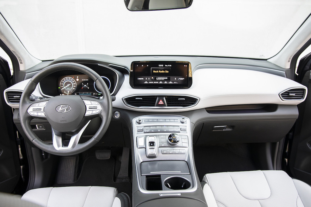Z rednim polnjenjem lahko računate na porabo približno pet litrov na 100 kilometrov, ob kratkih vožnjah tudi manj. Mi, ki tega nismo postavili za prioriteto, smo zabeležili še vedno sprejemljivih 8,9 litra. Sicer pa se je treba pri priključnem hibridu sprijazniti z nekoliko manjšim dosegom. Zaradi namestitve baterije rezervoar za gorivo namreč meri le 47 litrov oziroma 20 litrov manj kot pri običajnem hibridu ali turbodizlu. Priključnohibridni santa fe je torej zelo prostoren in udoben
